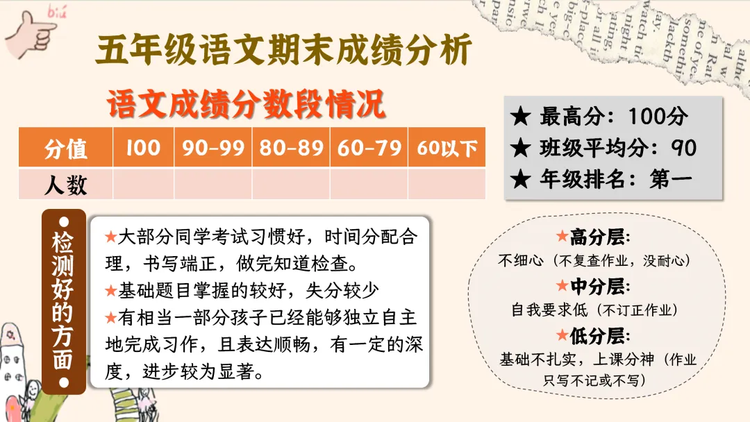 ★ 最高分:100分★ 班级平均分:90★ 年级排名:第一