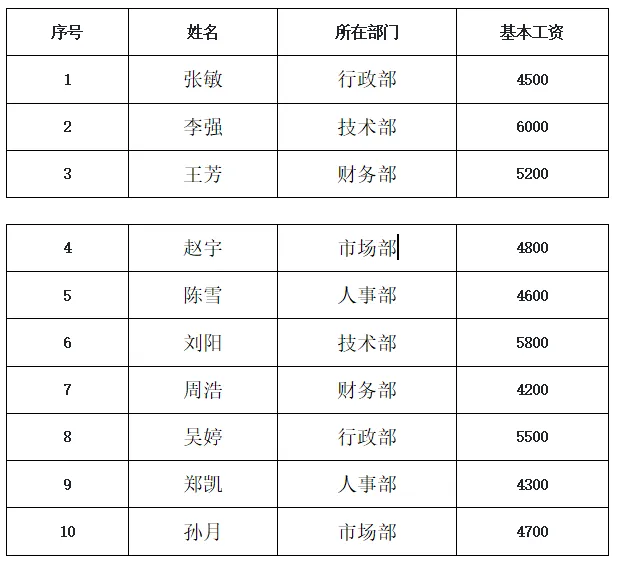 想要把一个完整表格拆分成两个独立表格,将光标定位到需要断开的位置,按住 Ctrl+Shift+Enter 组合键,表格就会从光标处一分为二(断开后的表格如下图),排版灵活度瞬间拉满。