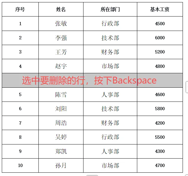 选中需要删除的整行或整列,直接按下Backspace退格键,就能一键清除选中的行/列,比右键点击删除的操作节省一半时间。
