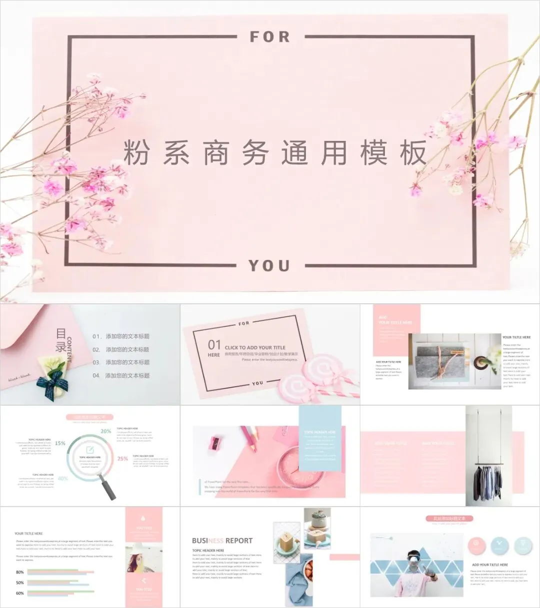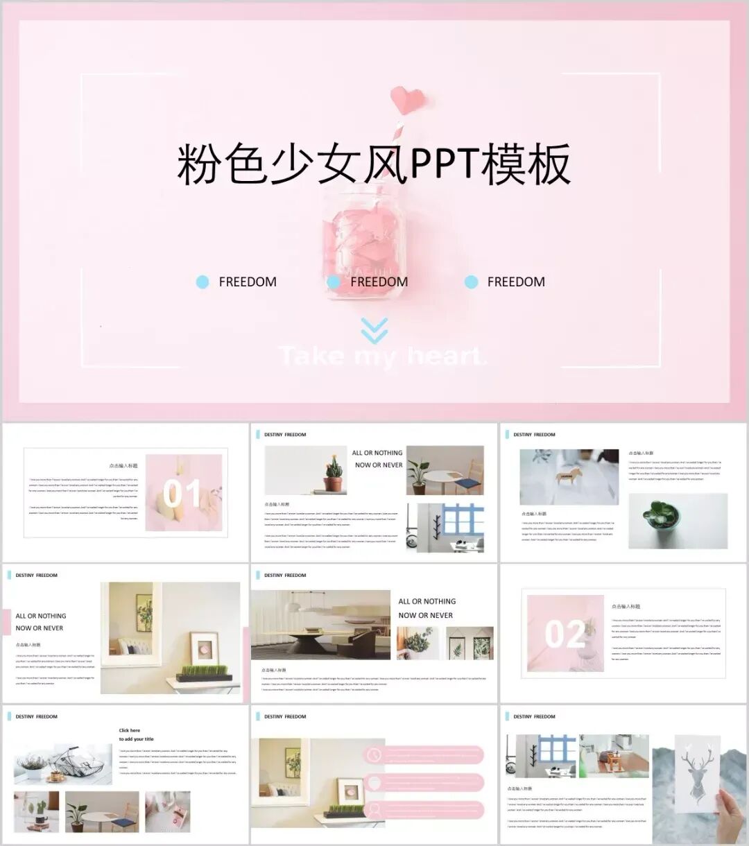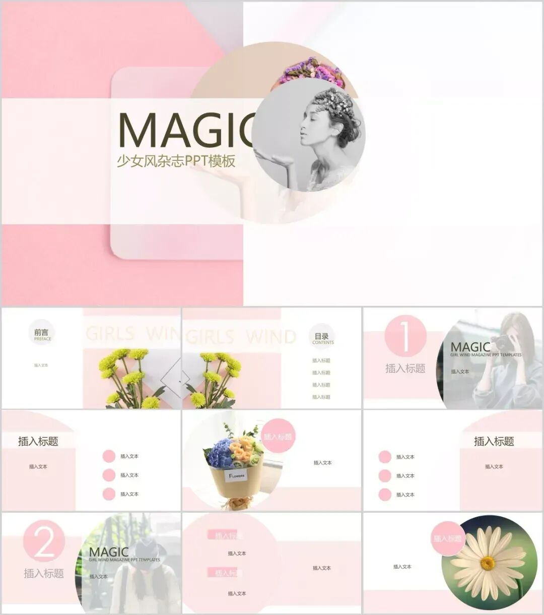 今天给大家带来一份粉色系PPT,不同的颜色都给人不同的感觉,蓝色给人以开朗,红色给人以热情,而粉丝则是给人以甜美、可爱、少女。