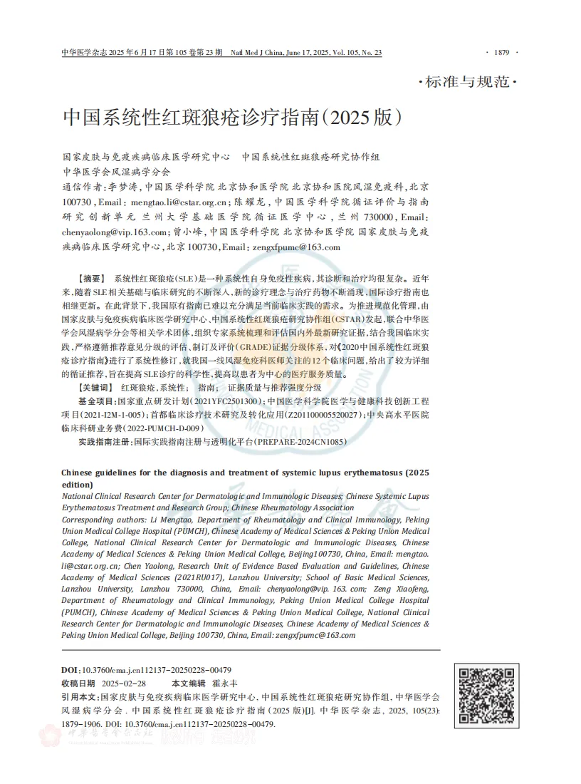 PPT 中国系统性红斑狼疮诊疗指南(2025版)