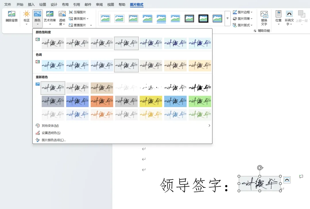 很多情况下都需要我们自己将老板的名字插入Word文档中进行打印,但是老板的签名照片打印出来极为模糊不清,严重影响正常工作。其实很简单,只需要将图片的格式进行稍微调整即可。