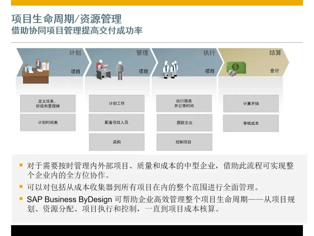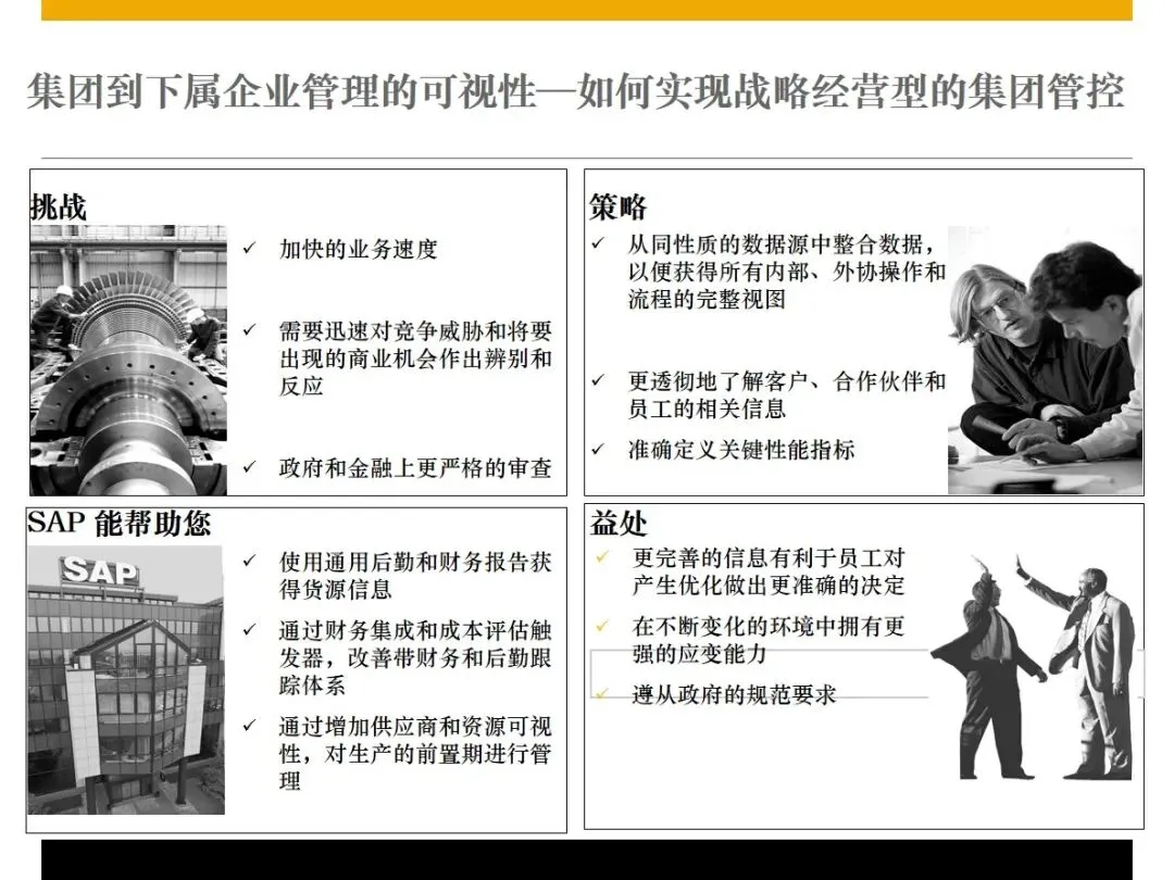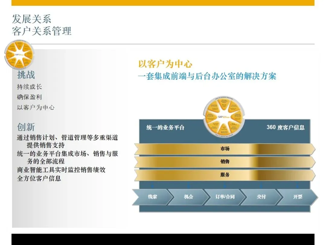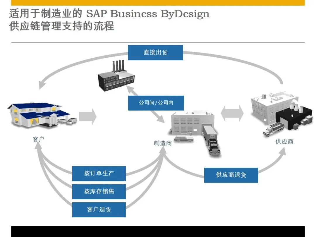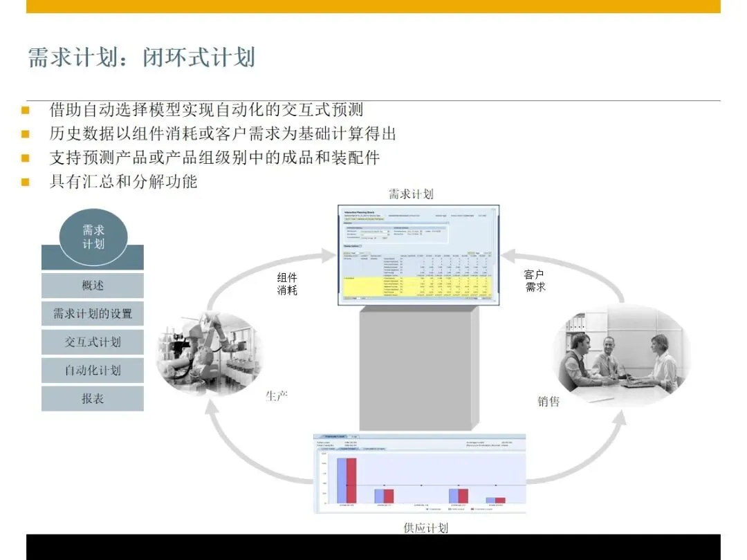 SAP机械制造行业解决方案,围绕“订单导向”的理念,建立了面向多配置的设计、生产和交付集成系统,满足了精益生产和协同高效的需求,并将其应用于整个价值链的数字化整合。