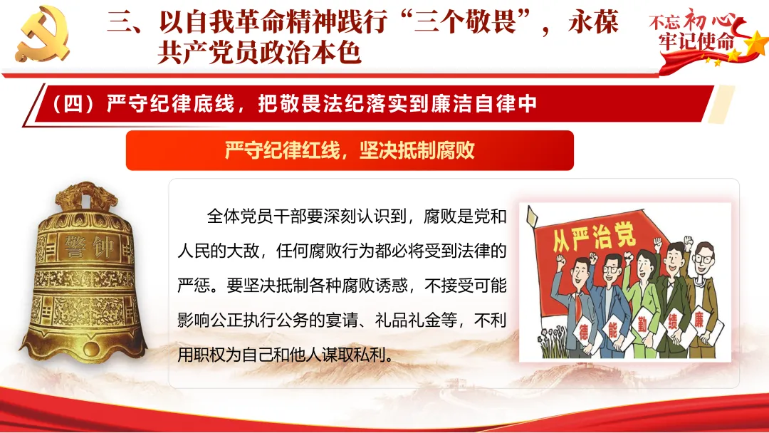 党课从 “三个敬畏” 的时代要义出发,当下使命担当,既阐释了 “人民至上” 的根本立场、“忠诚担当” 的政治品格,也明确了 “守底线不越界” 的行为准则。更以多个镜鉴,剖析根源。