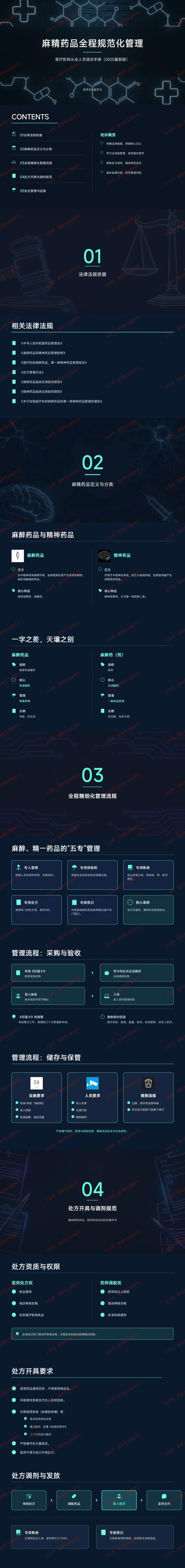 - 核心法规:《中华人民共和国药品管理法》《麻醉药品和精神药品管理条例》《医疗机构麻醉药品、第一类精神药品管理规定》《处方管理办法》等。