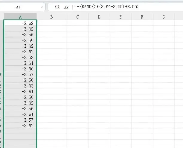 原公式:=(RANDBETWEEN(0,1)*2-1) * (RAND()*(3.64-3.55)+3.55)