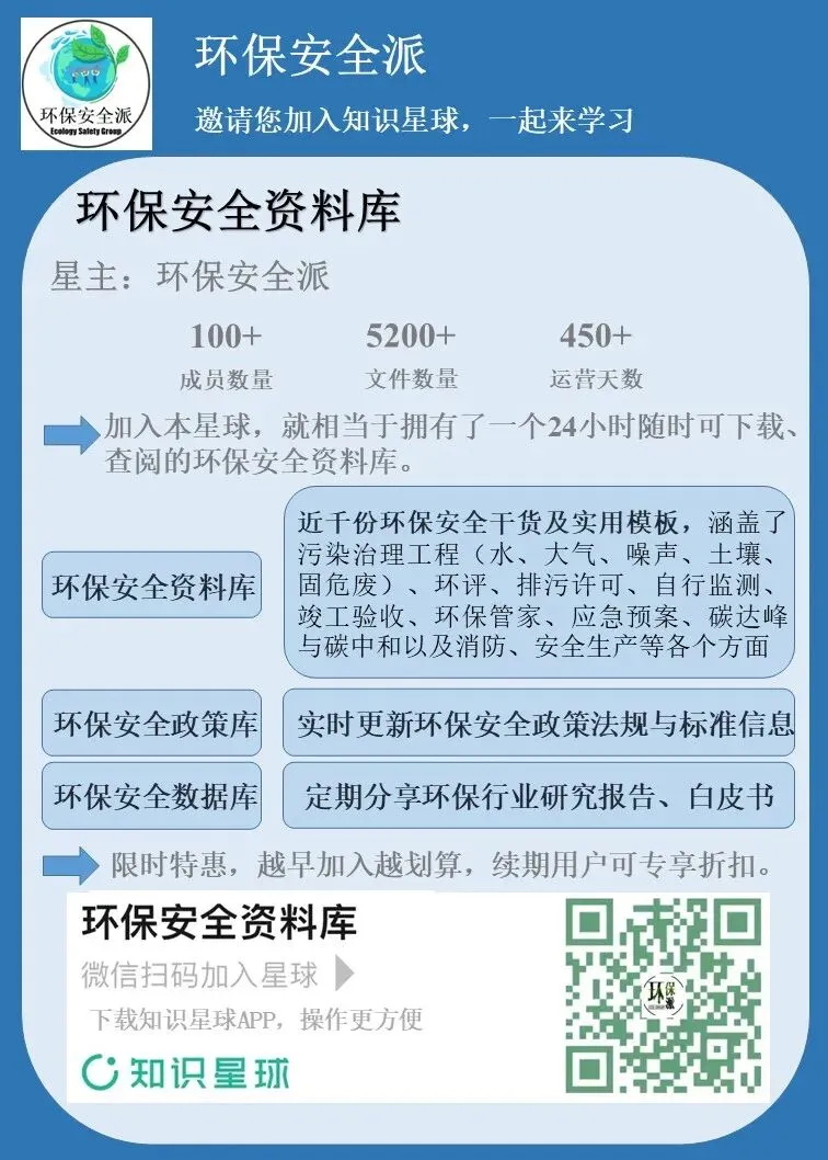 关注【环保安全派】公众号,扫描文章下方知识星球二维码可直接下载资料,已同步更新知识星球。