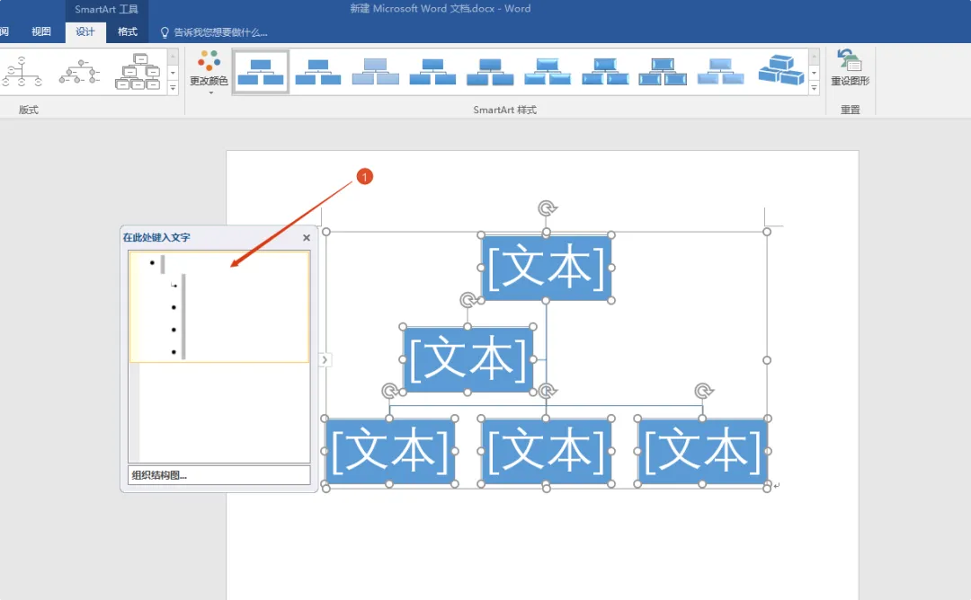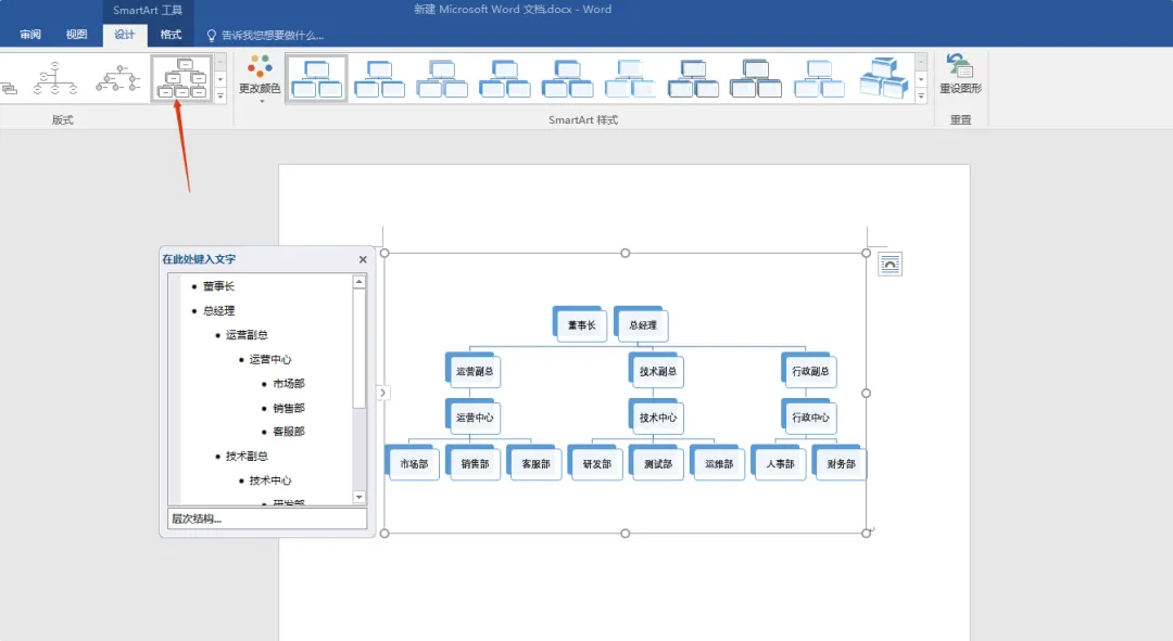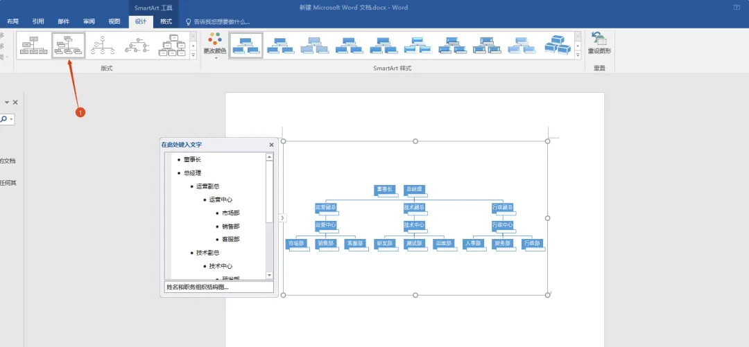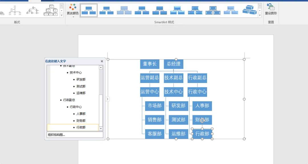 9. 选择对应的版式做调整,就可以看到一个组织结构图了