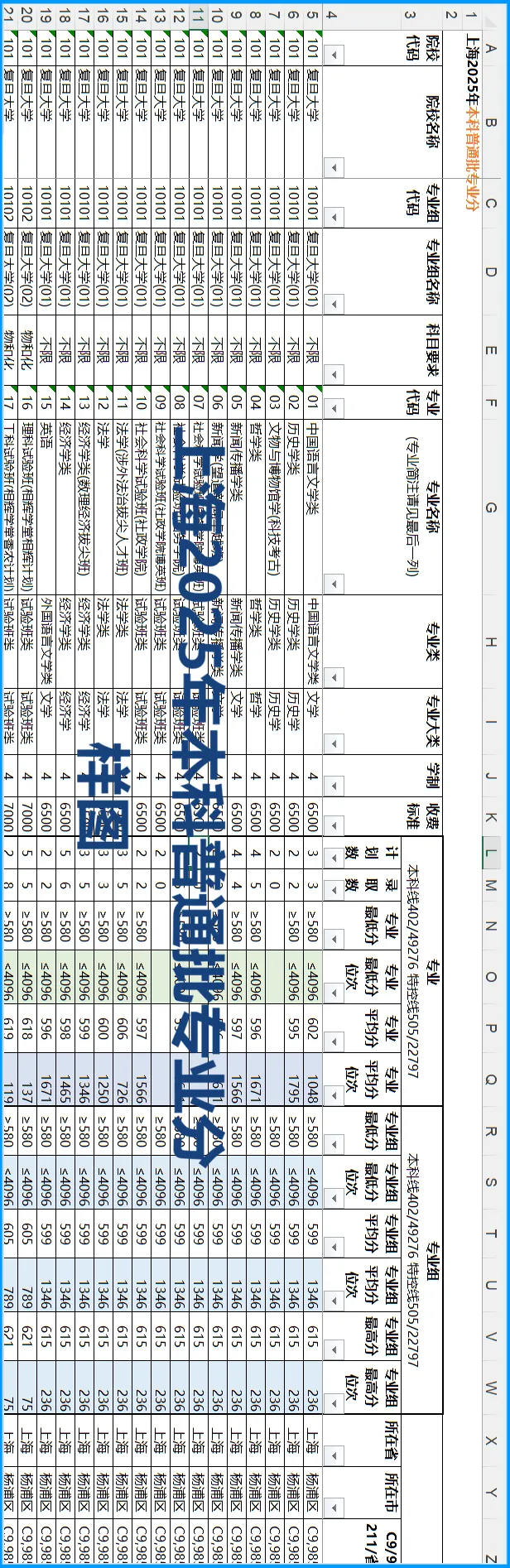 本篇提供上海市2025年高考本科普通批次各专业投档线Excel表格,含: