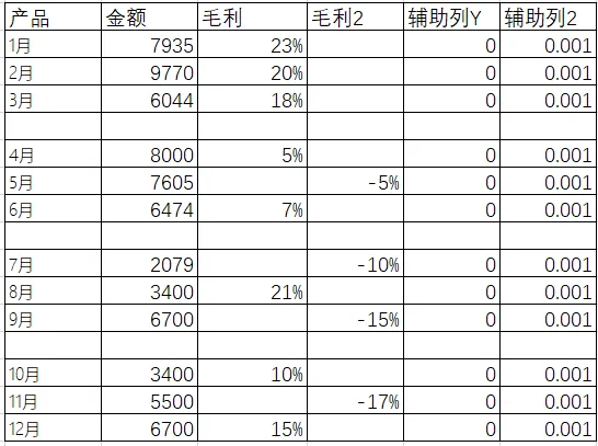 :将负值的毛利放置在另外一列,为的是方便对负值的统一批量设计,所以如果没有负值的情况 可以不设置此列。
