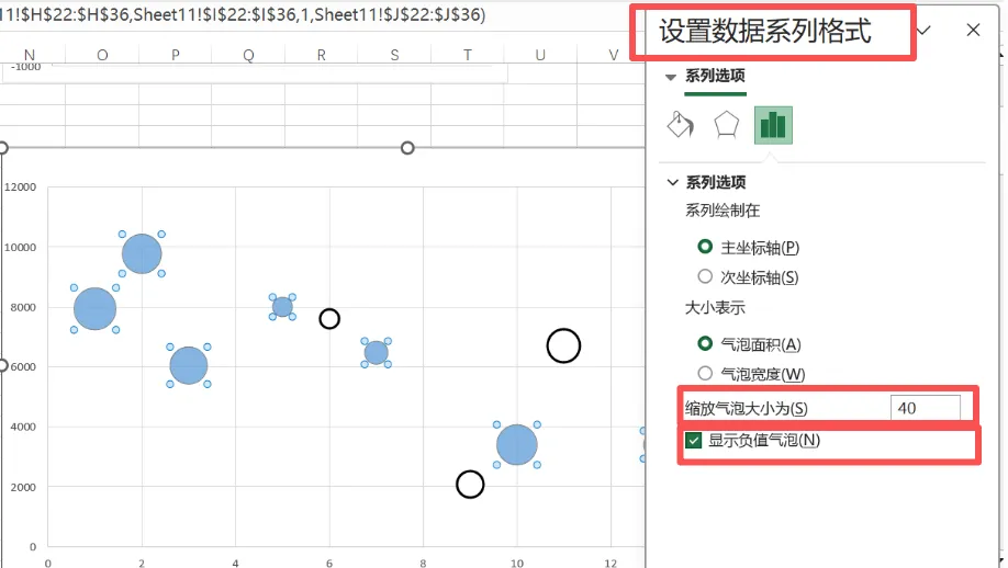 显示负值气泡