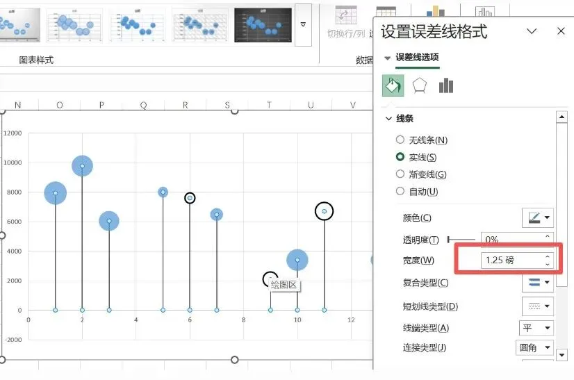 同时选中误差线,设置线宽1.25磅