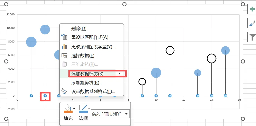 完成后选中辅助列气泡右击选择【添加数据标签】