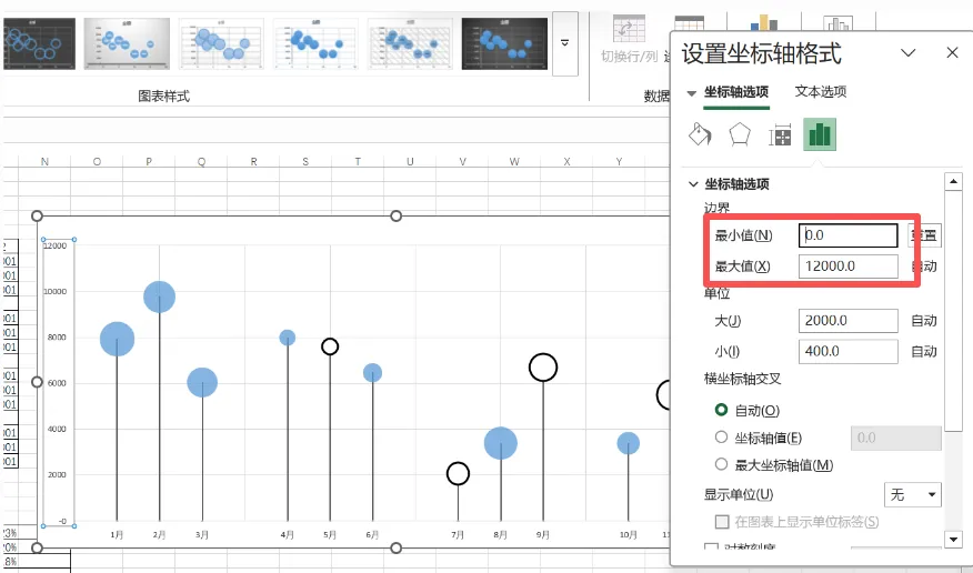添加完成后发现图表没有变化,点击任意气泡,CTRL+1、✔【