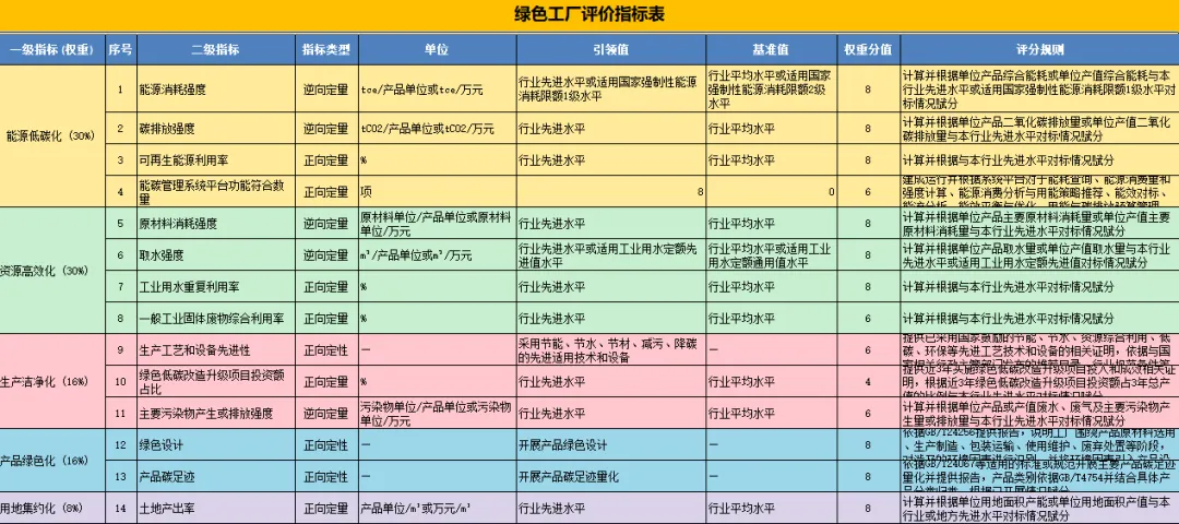绿色工厂新国标评价Excel自动计算表!