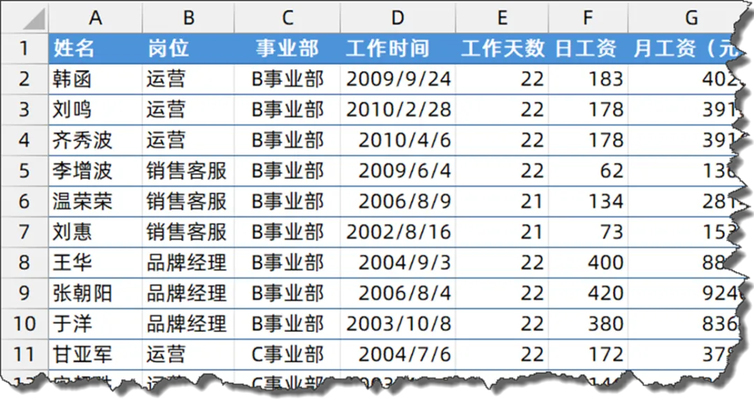 小伙伴们好啊,你有多久没看到工资条了?今天就和大家分享在Excel中生成工资条的方法。先看工资表: