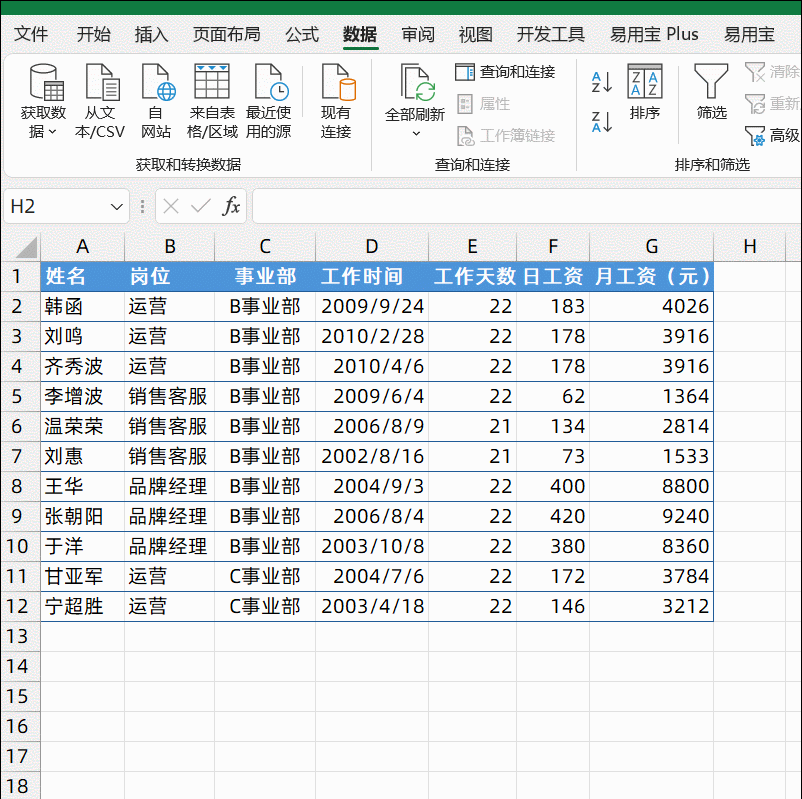 单击H列任意单元格,【数据】选项卡下单击【升序】按钮。