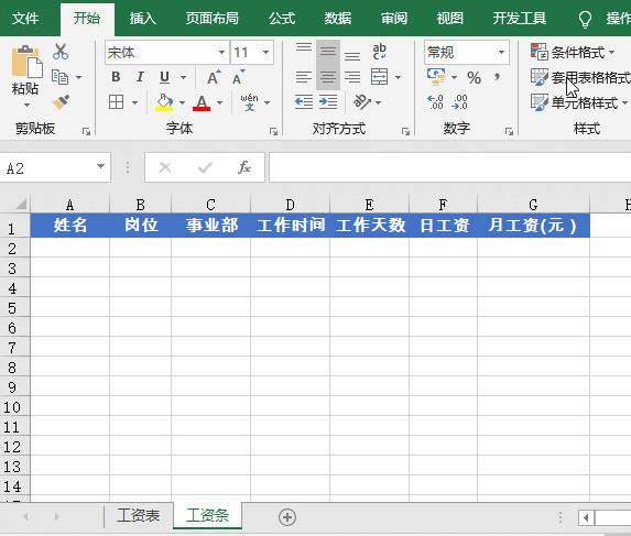 在“工资条”工作表的A2单元格输入以下公式:
