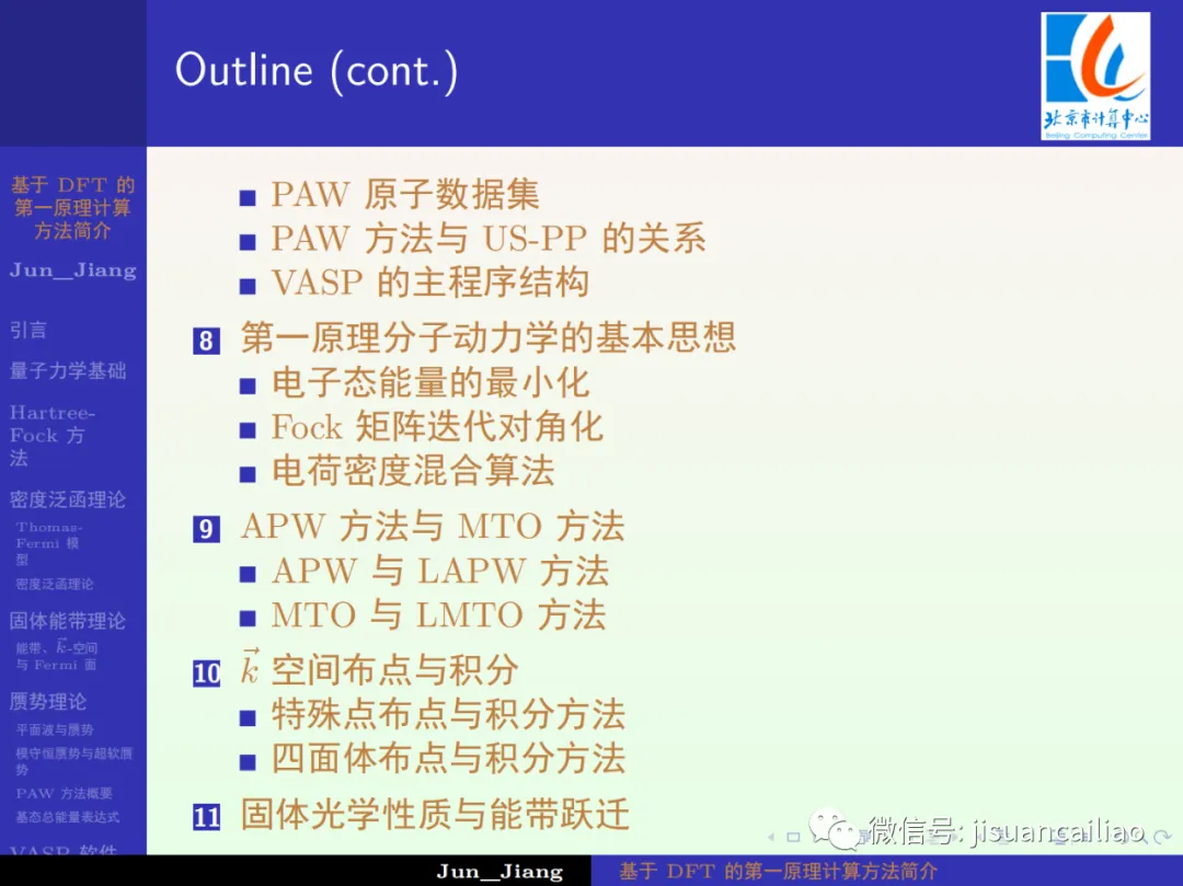 本次课程PPT由姜骏老师制作,共344页,将重点关注材料与物性计算中涉及第一原理部分的基本思想和程序与算法实现。经姜骏老师同意,现将PPT免费分享给大家。