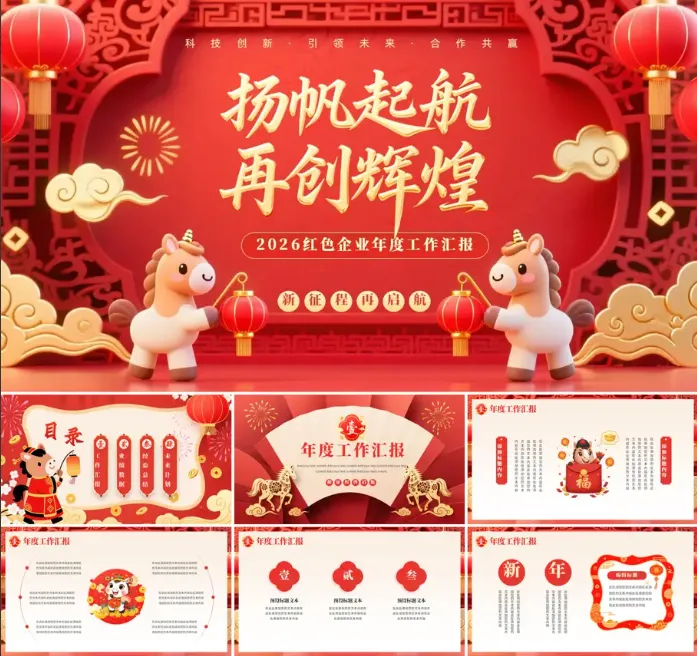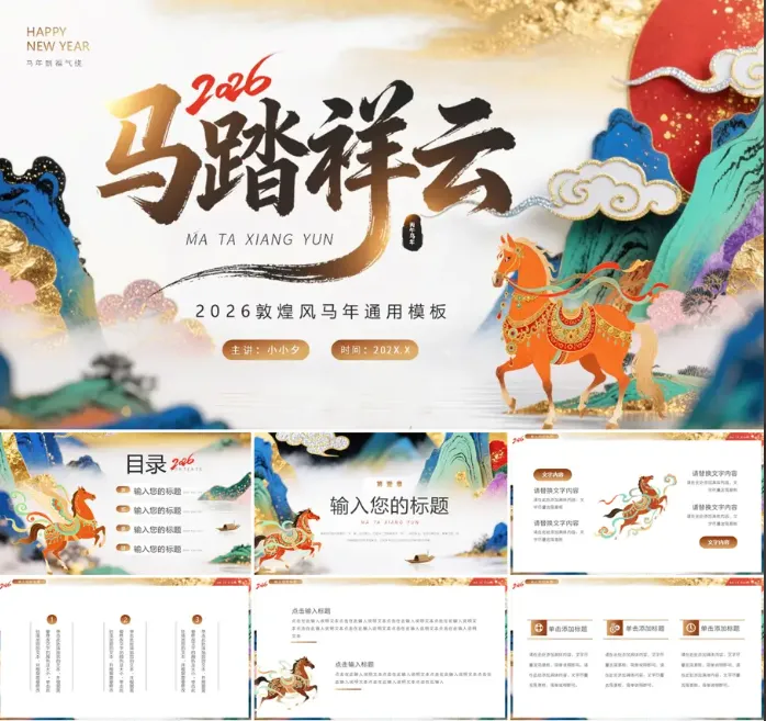 2026马年主题PPT模板适用于新年年会、工作汇报、年终总结、述职报告......