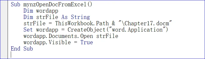 17从 Excel 打开 Word 文档Open Word Document from Excel