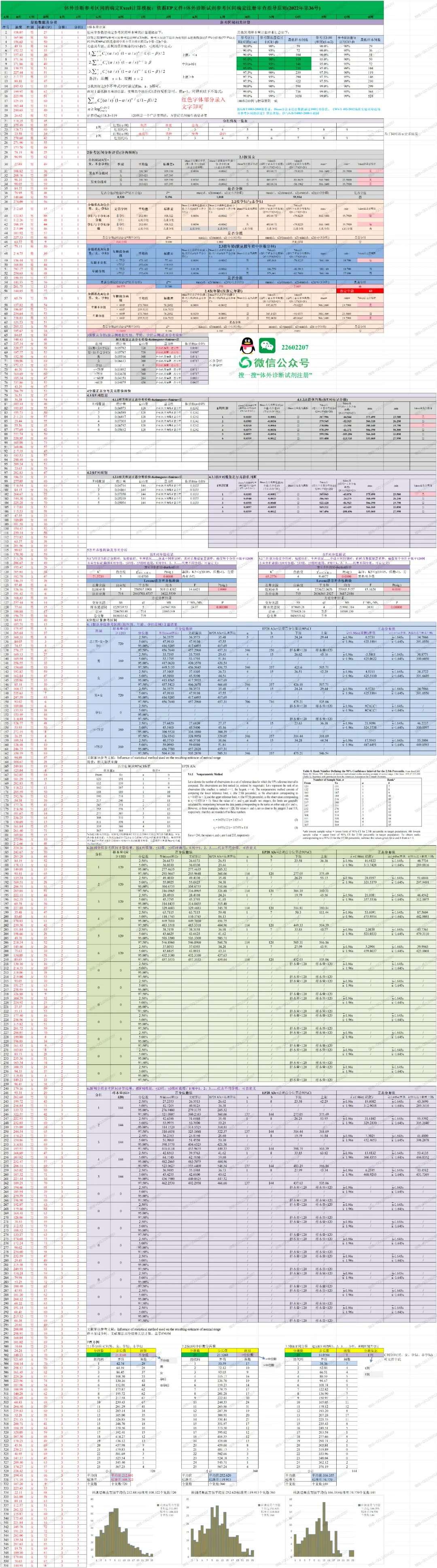 >参考区间Excel计算模板(含正态分布法+百分位数法)依据EP28 A3c+C28 A2+WS T402-2012