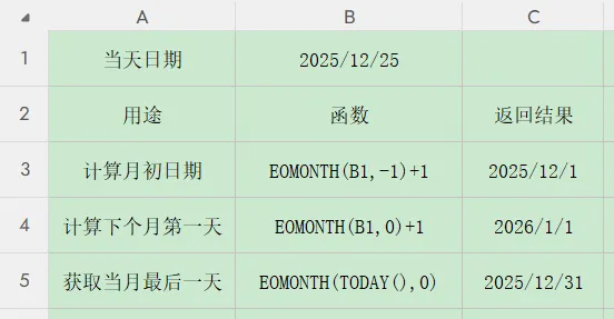 计算下个月第一天:=EOMONTH(日期,0)+1