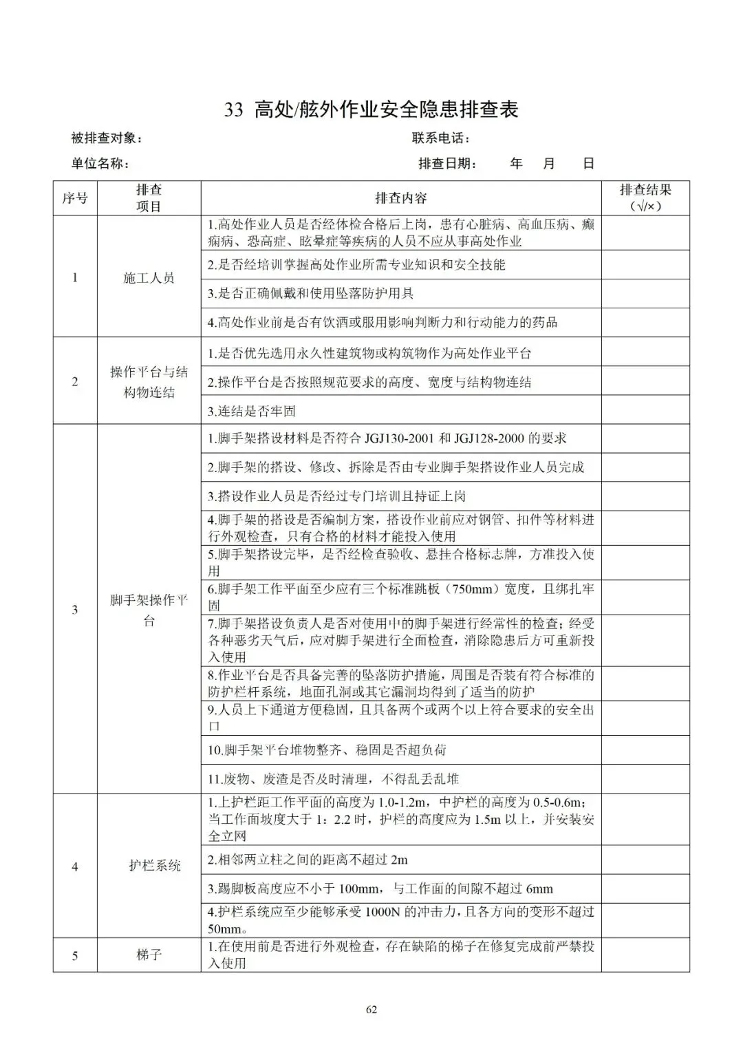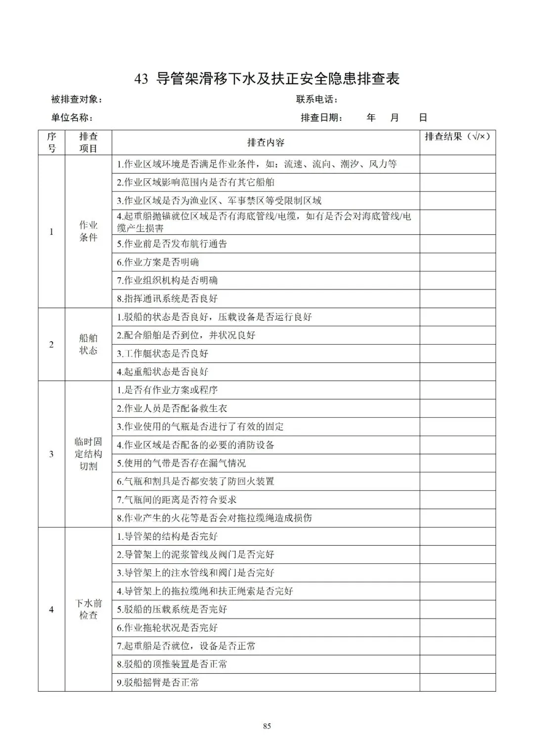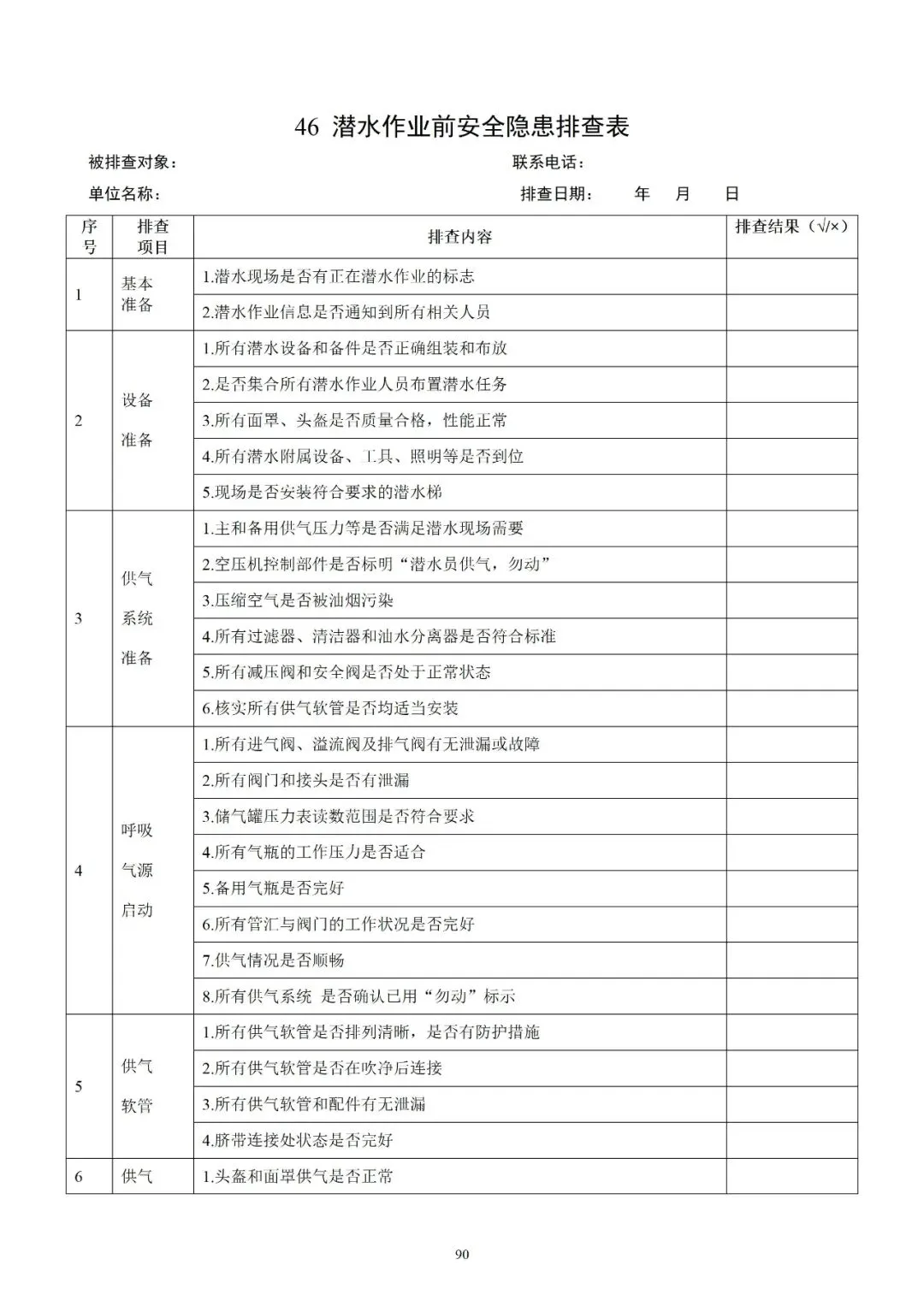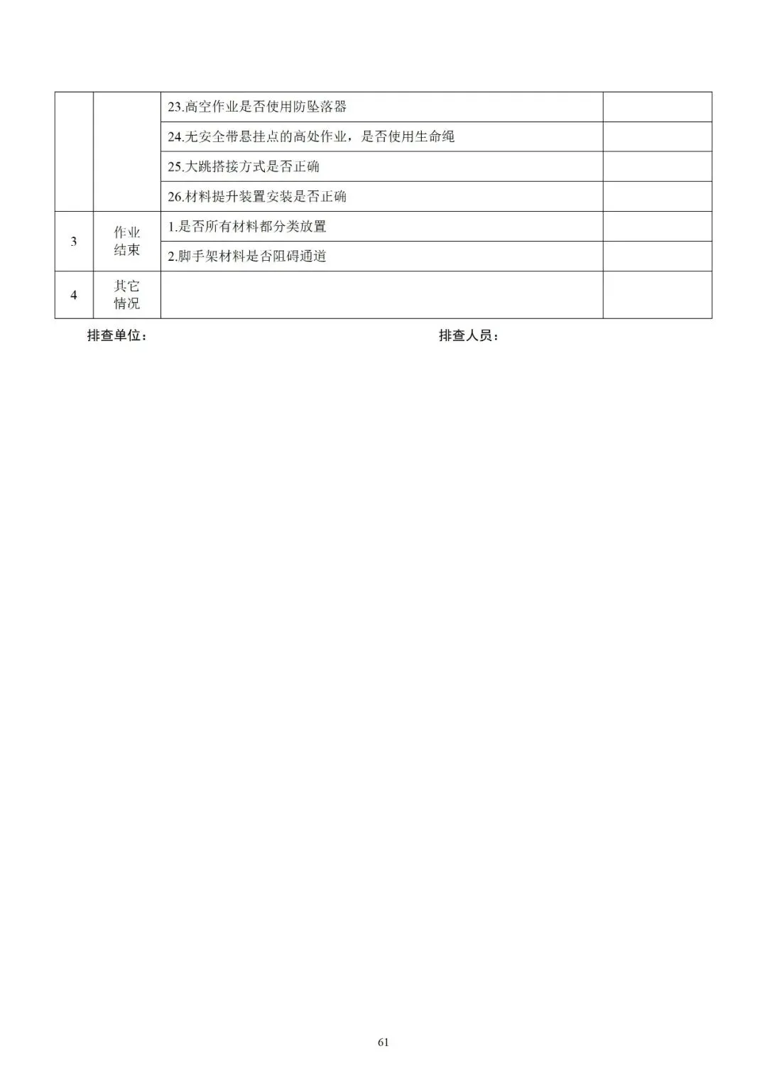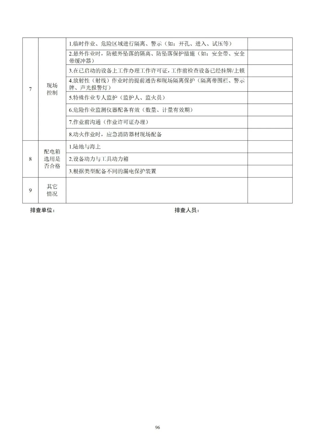 序号 | 排查 项目 | 排查内容 | 排查结果(√/×) |