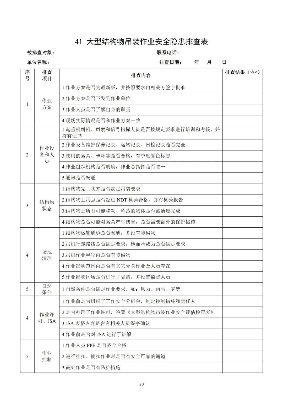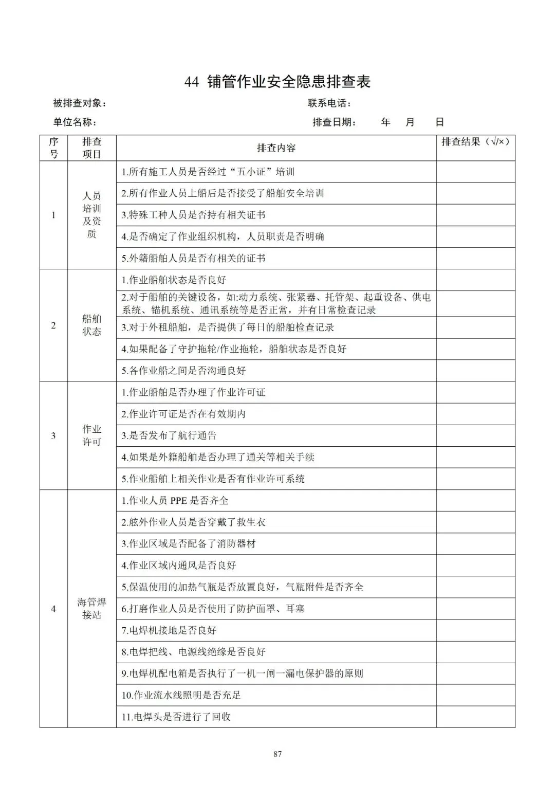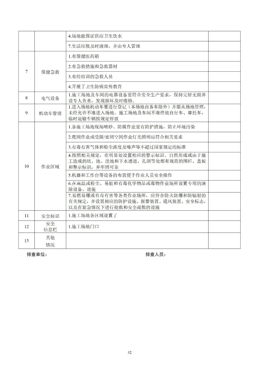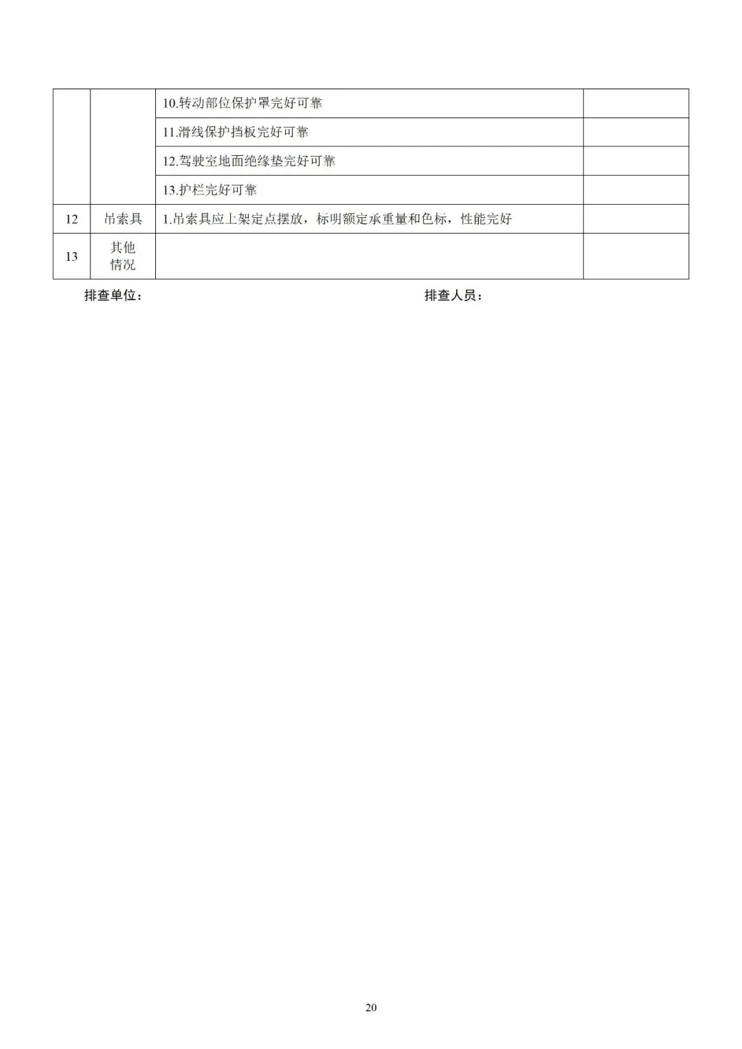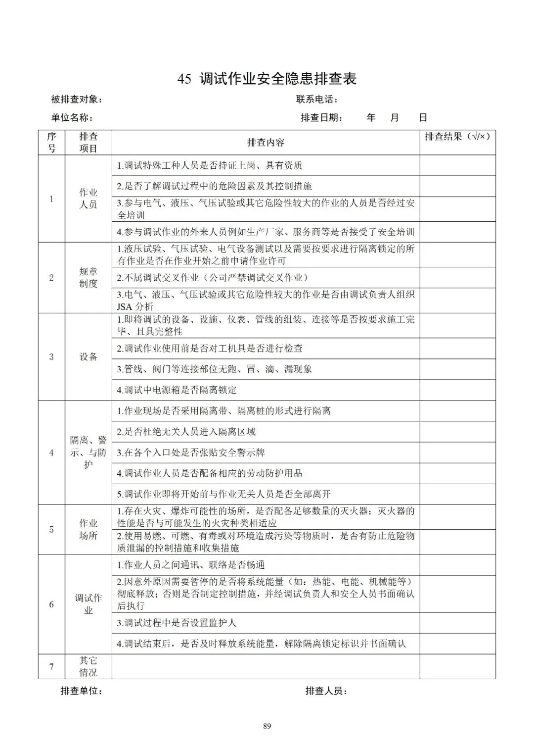 序号 | 排查 项目 | 排查内容 | 排查结果(√/×) |