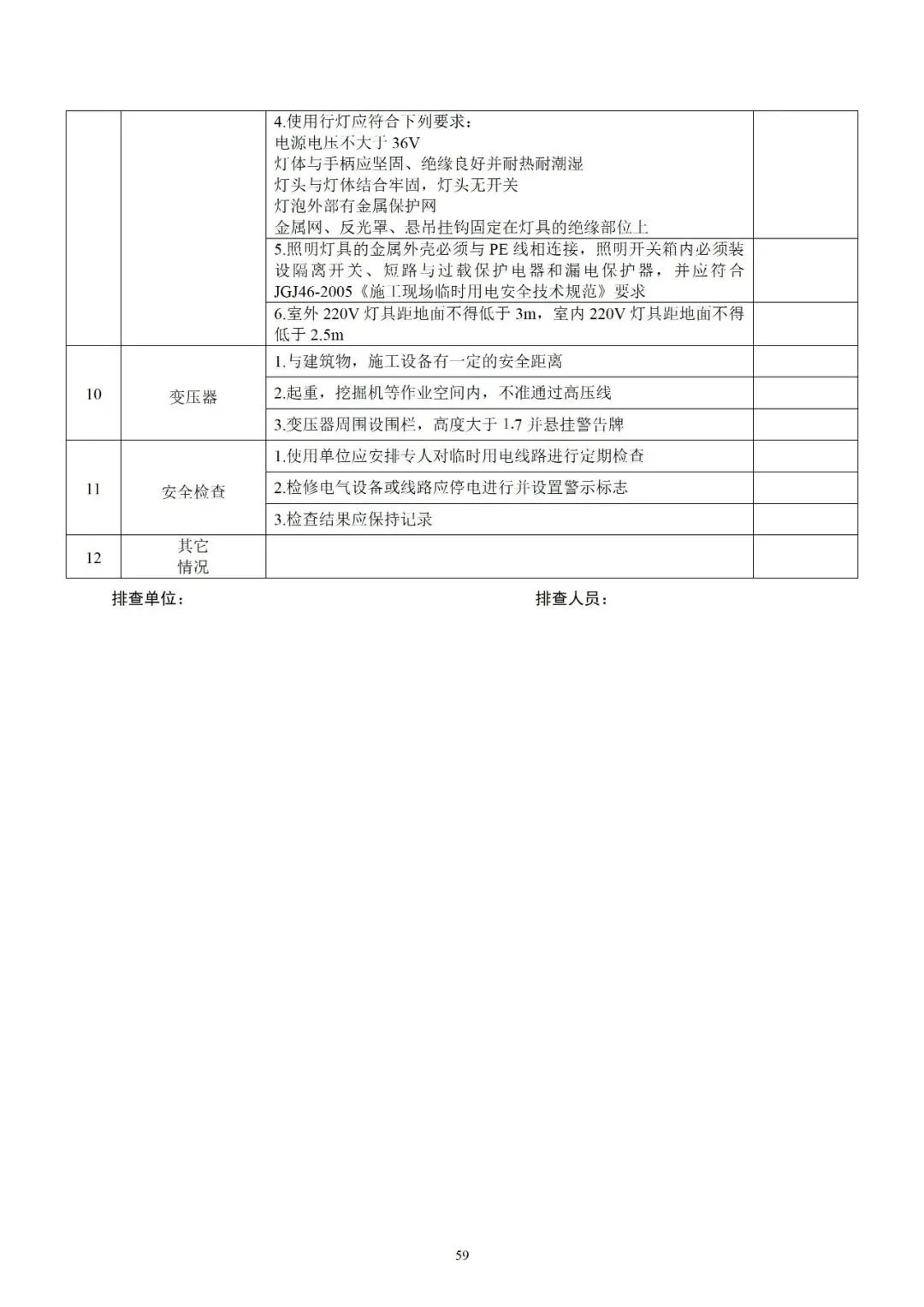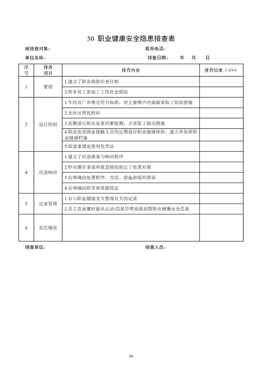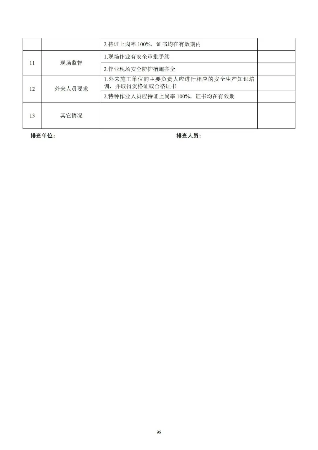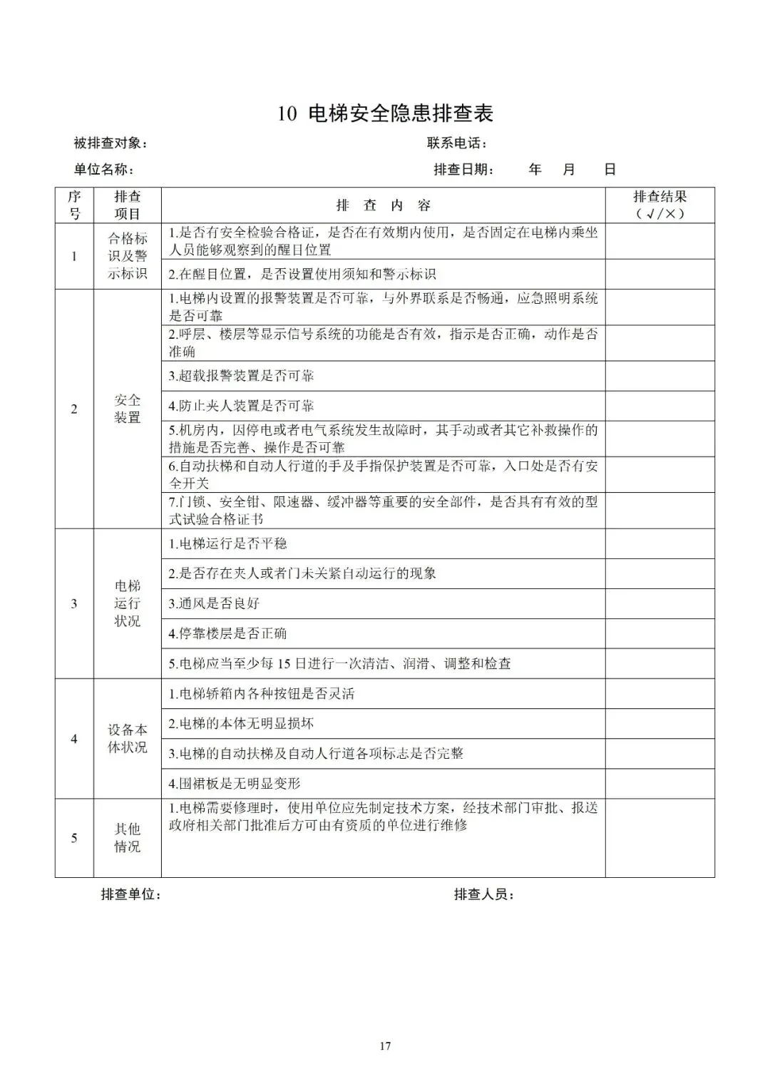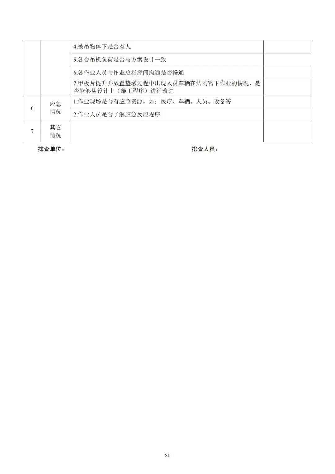序号 | 排查 项目 | 排查内容 | 排查结果(√/×) |