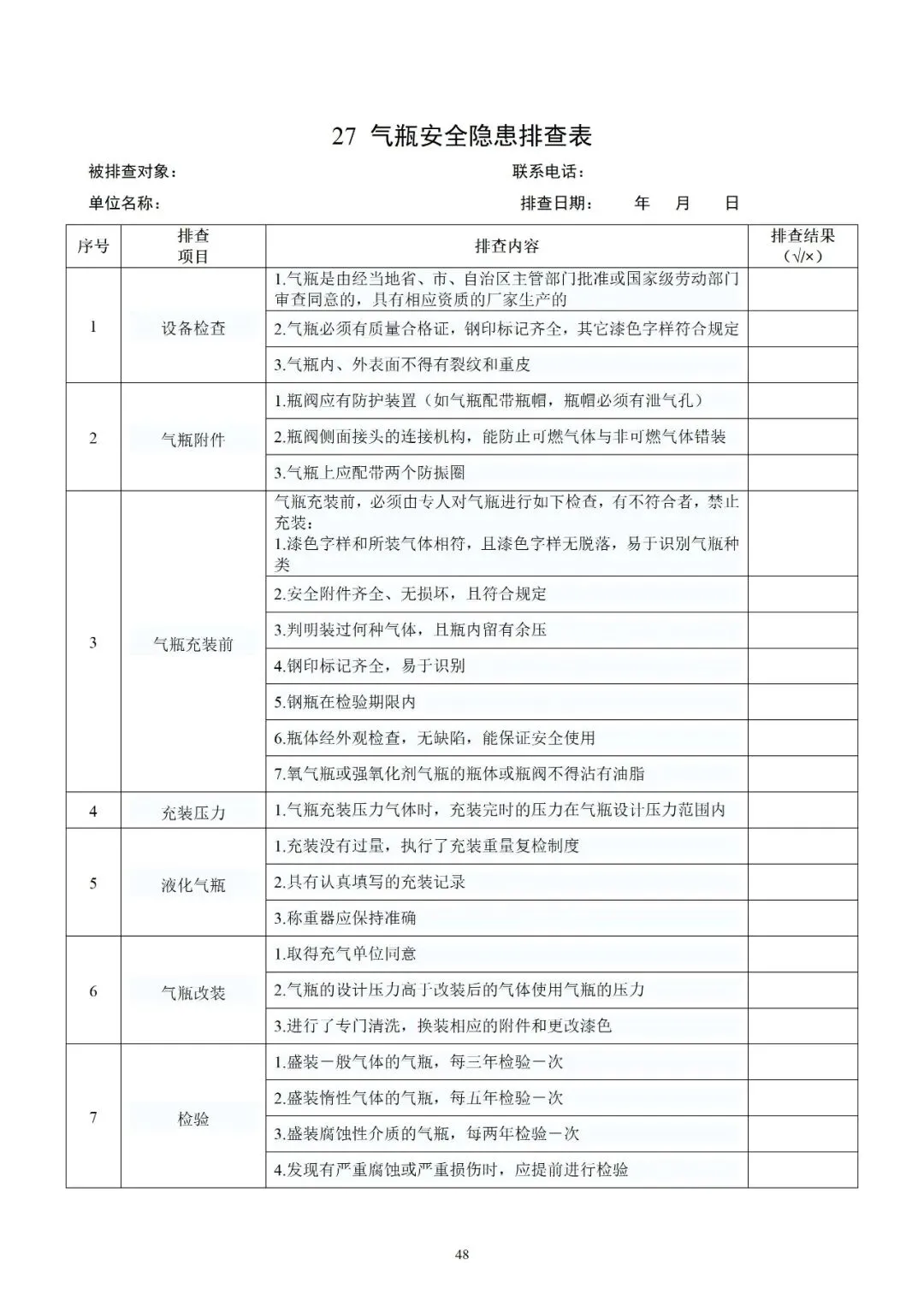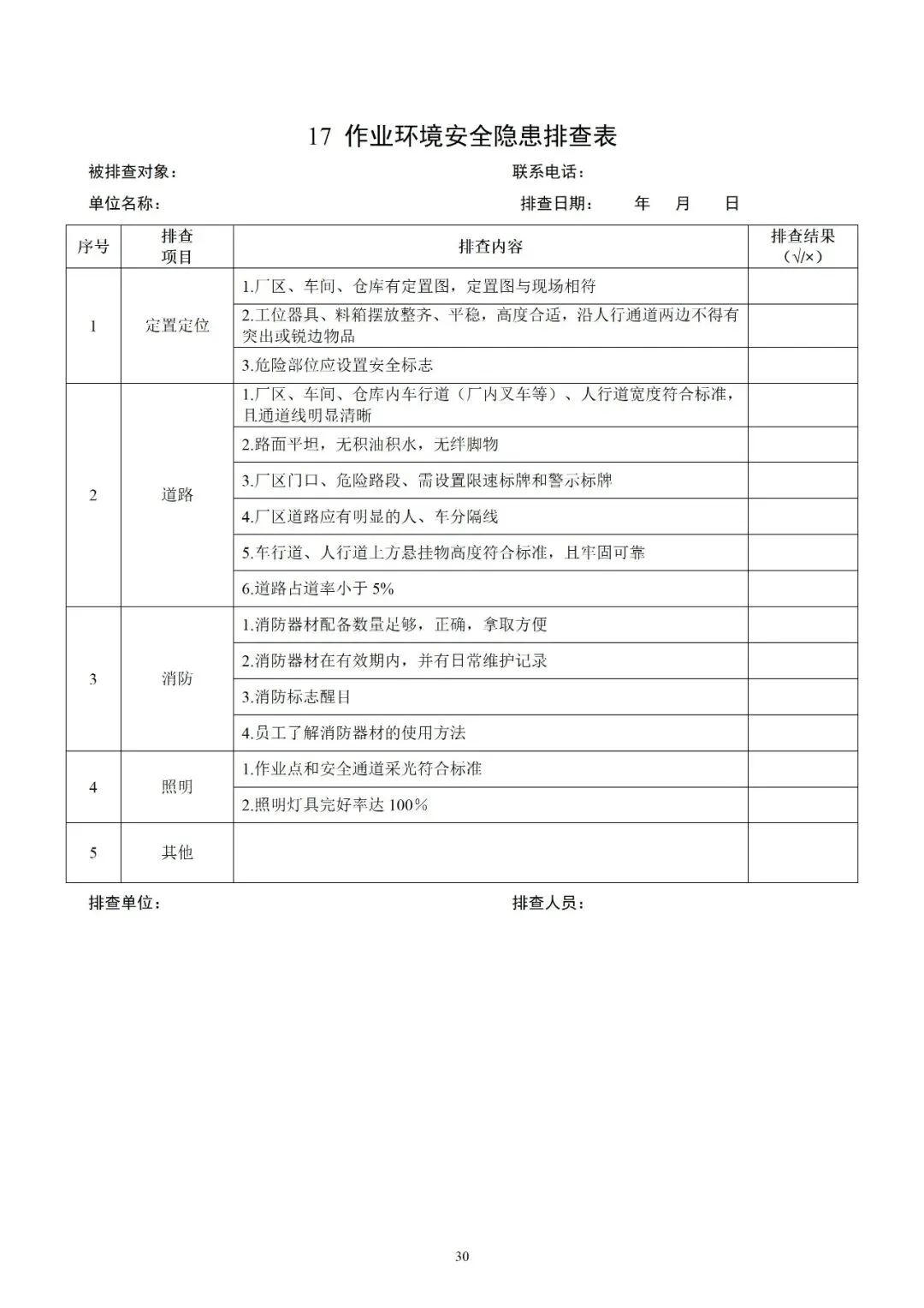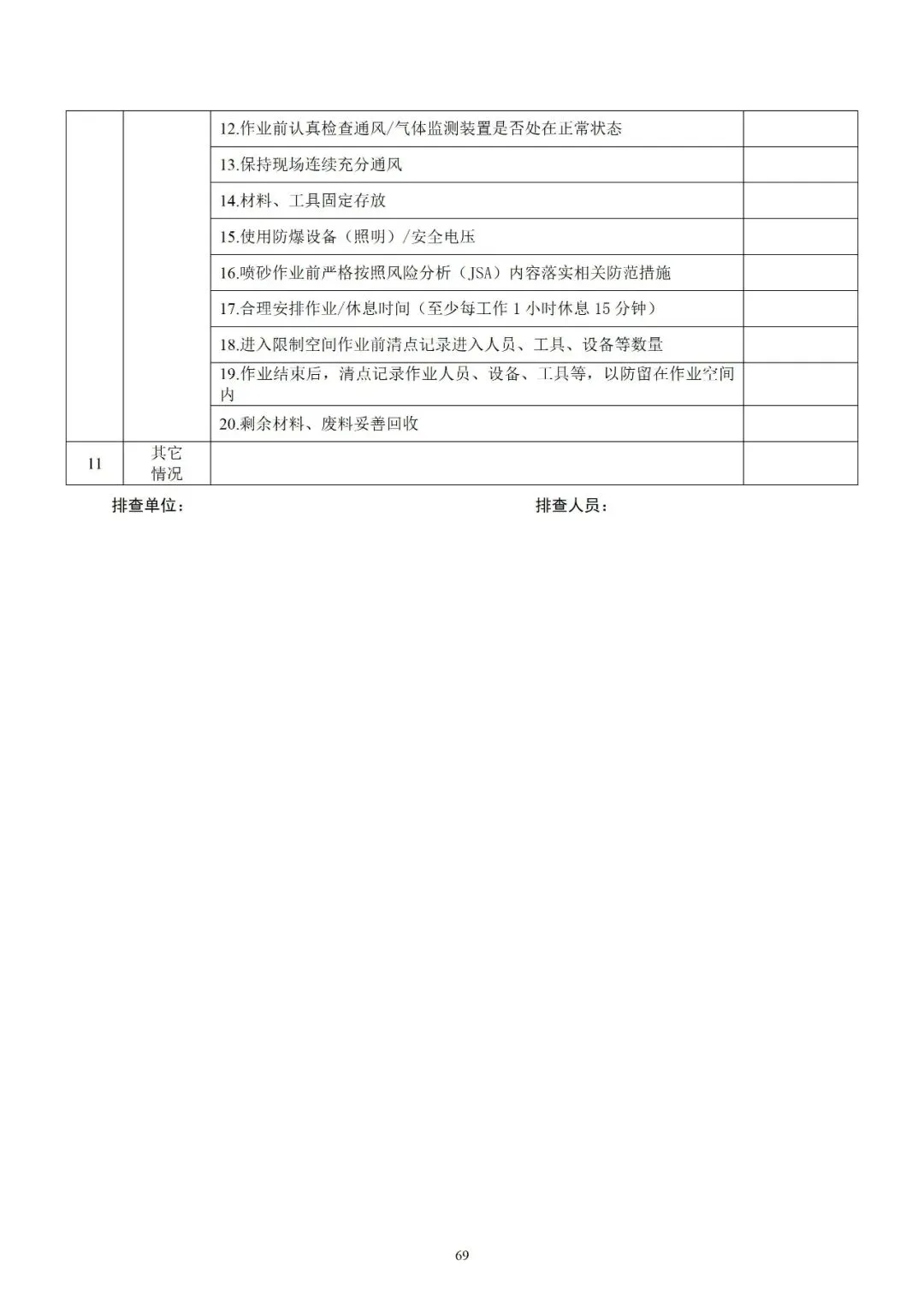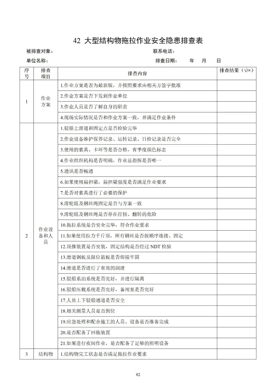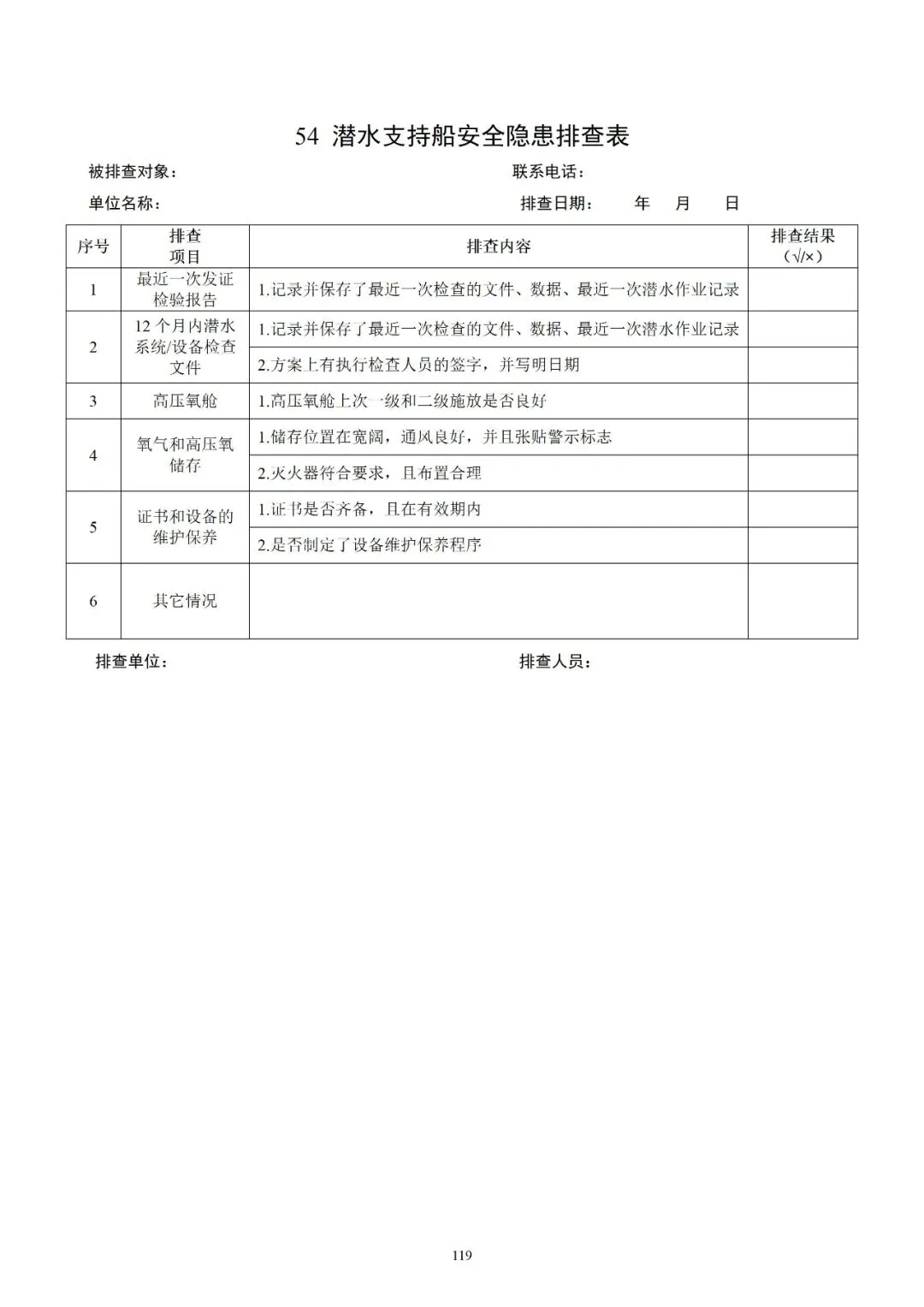 序号 | 排查 项目 | 排查内容 | 排查结果(√/×) |