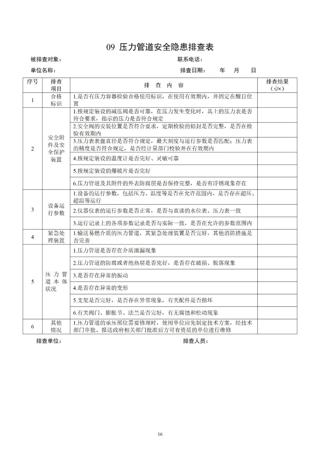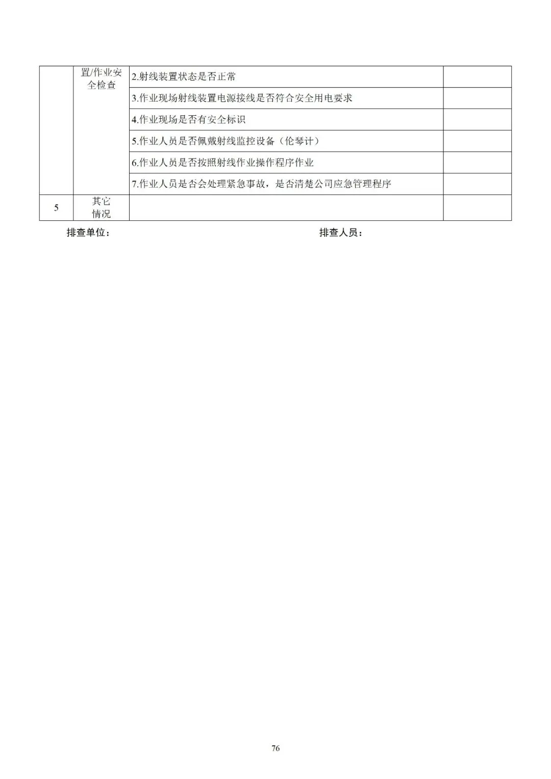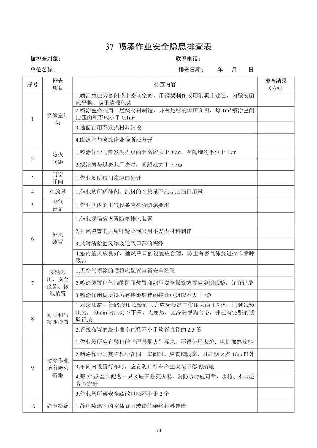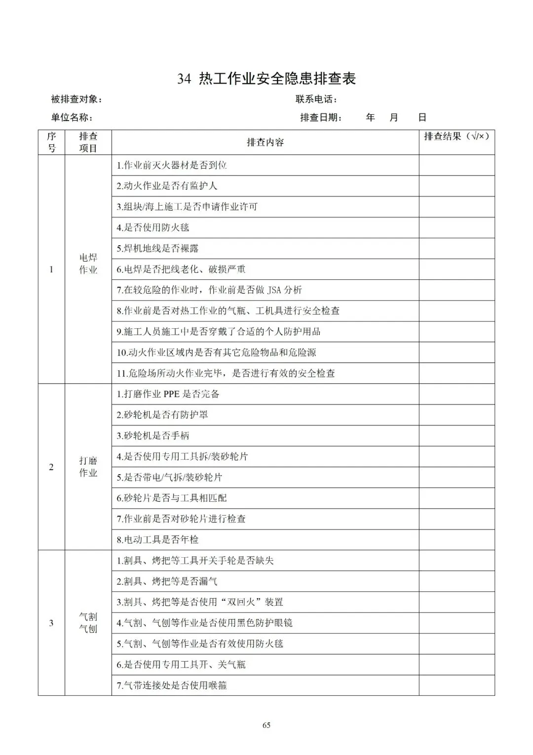 序号 | 排查 项目 | 排查内容 | 排查结果(√/×) |
