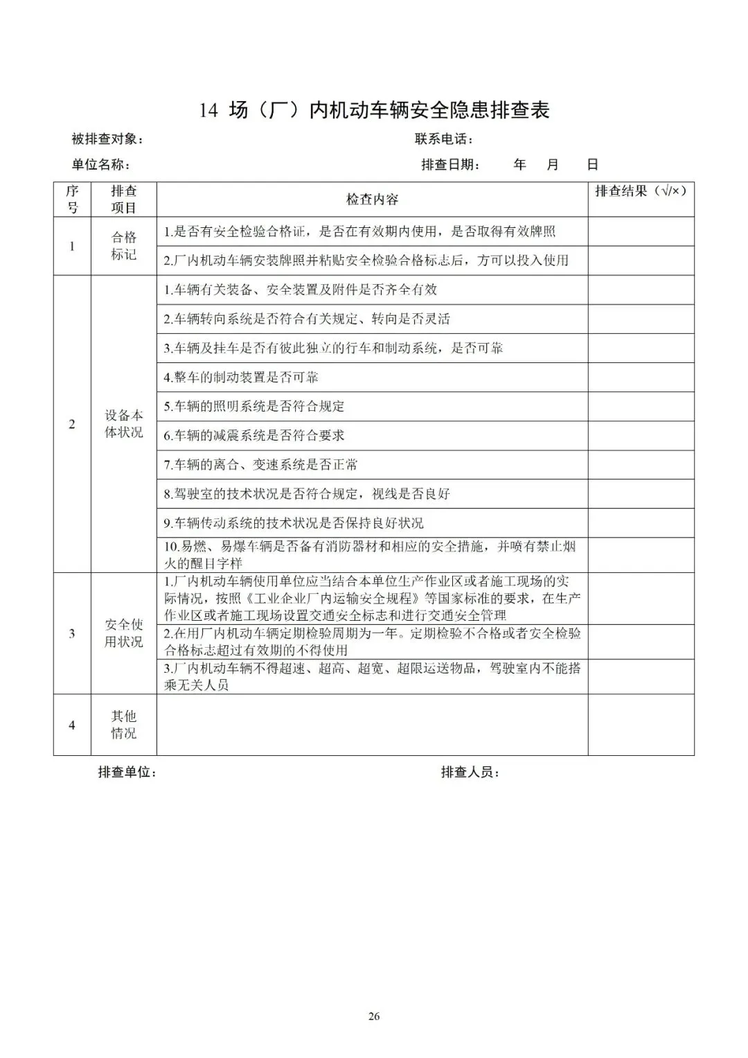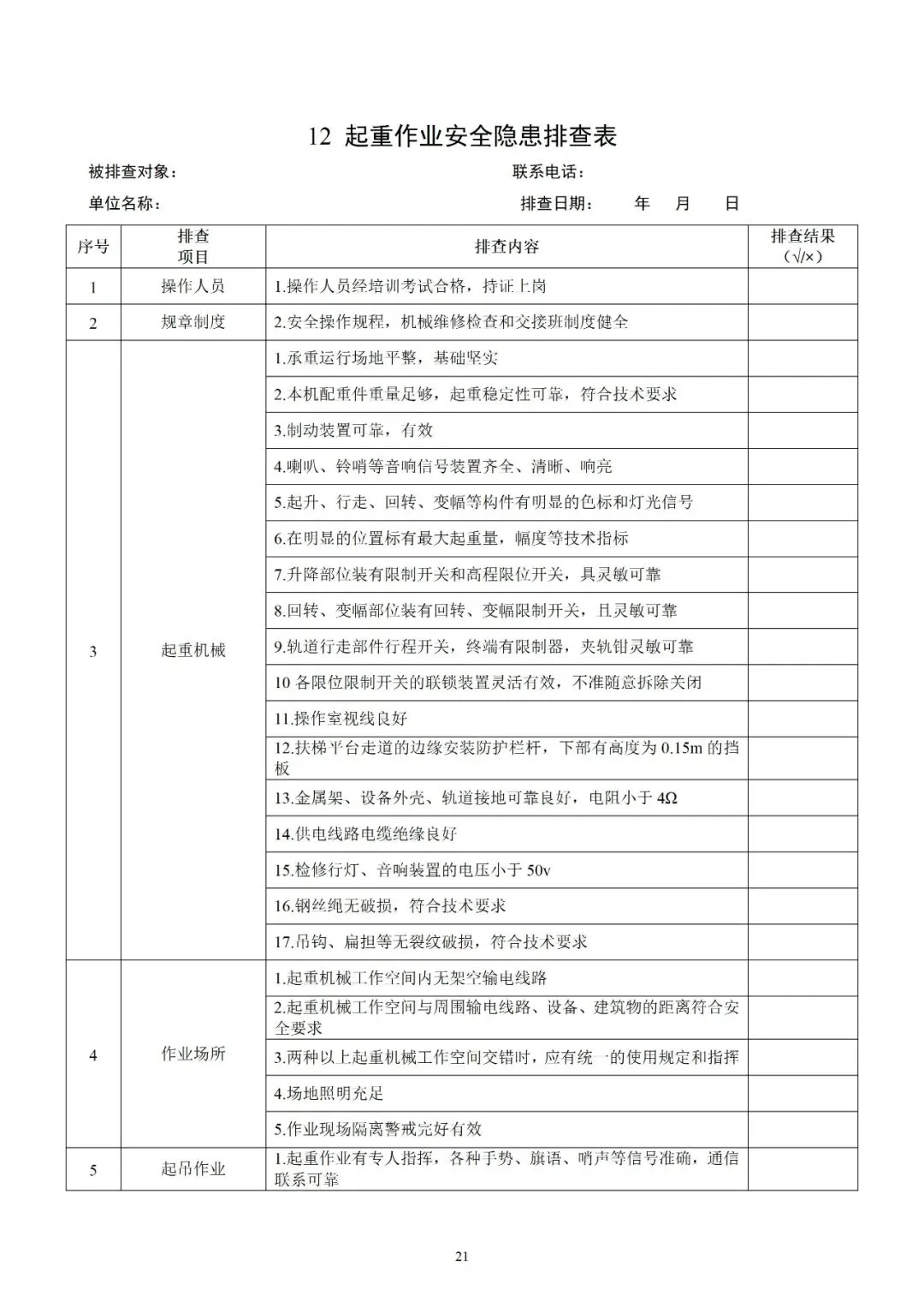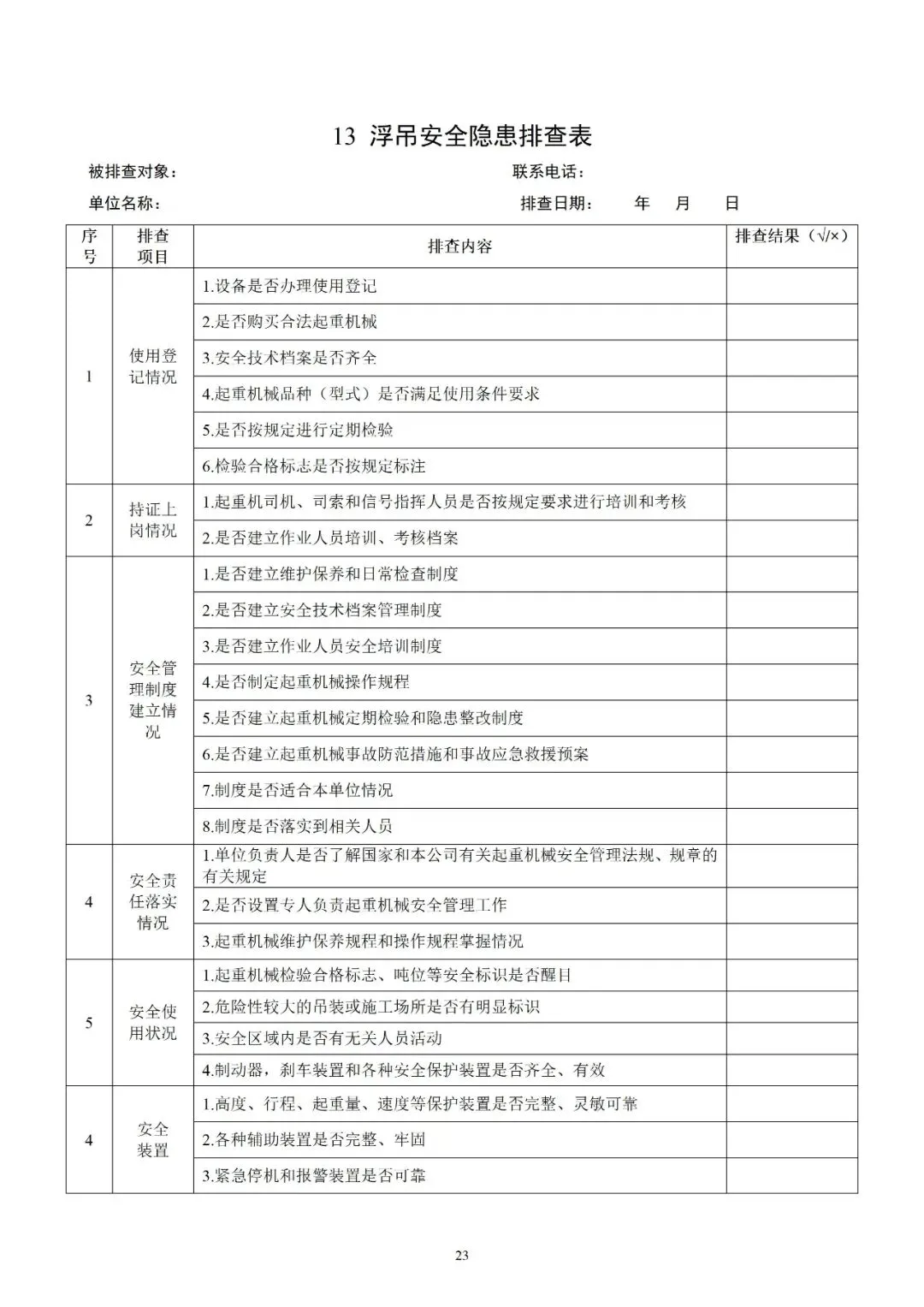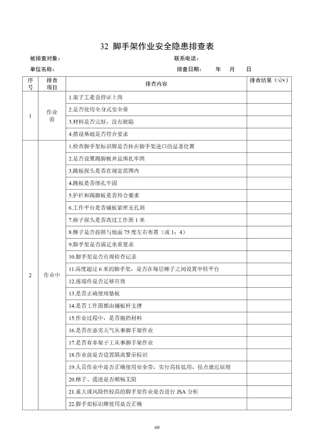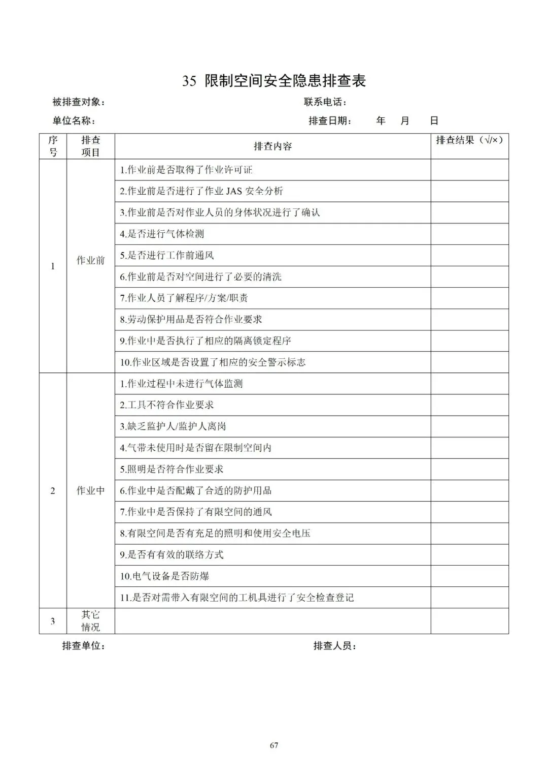 序号 | 排查 项目 | 排查内容 | 排查结果(√/×) |