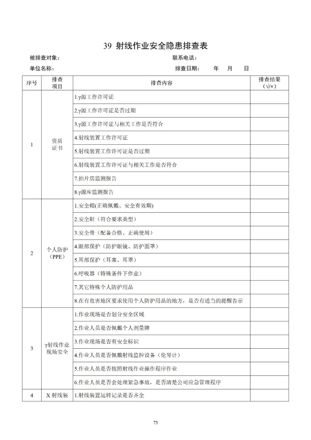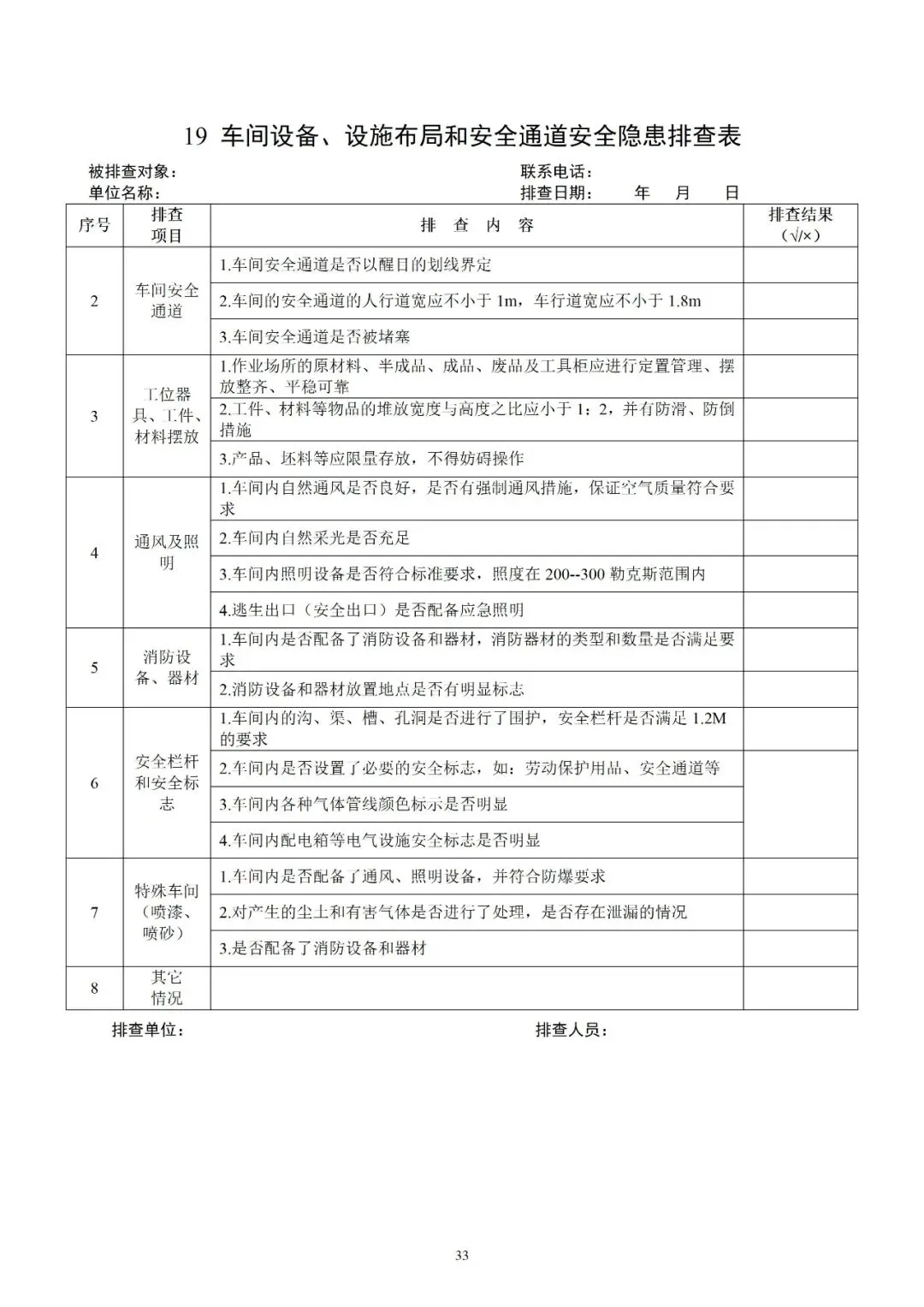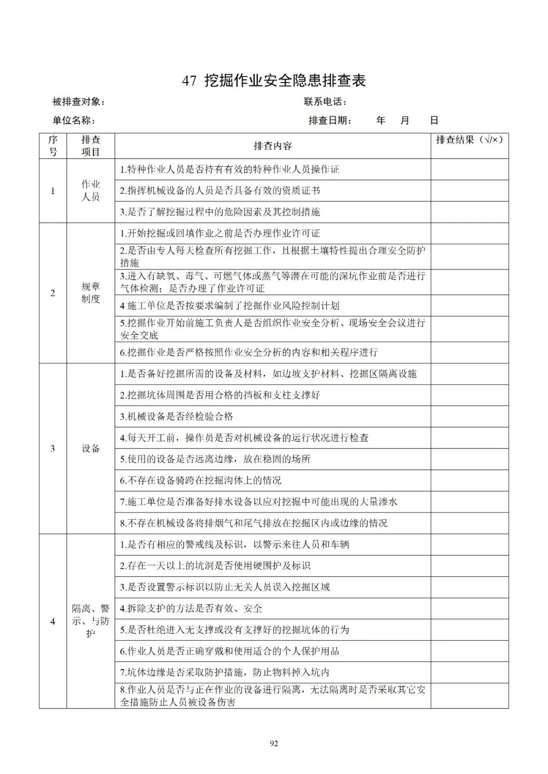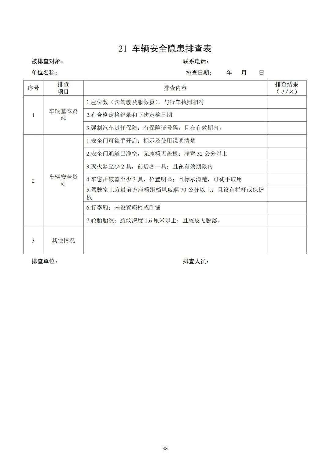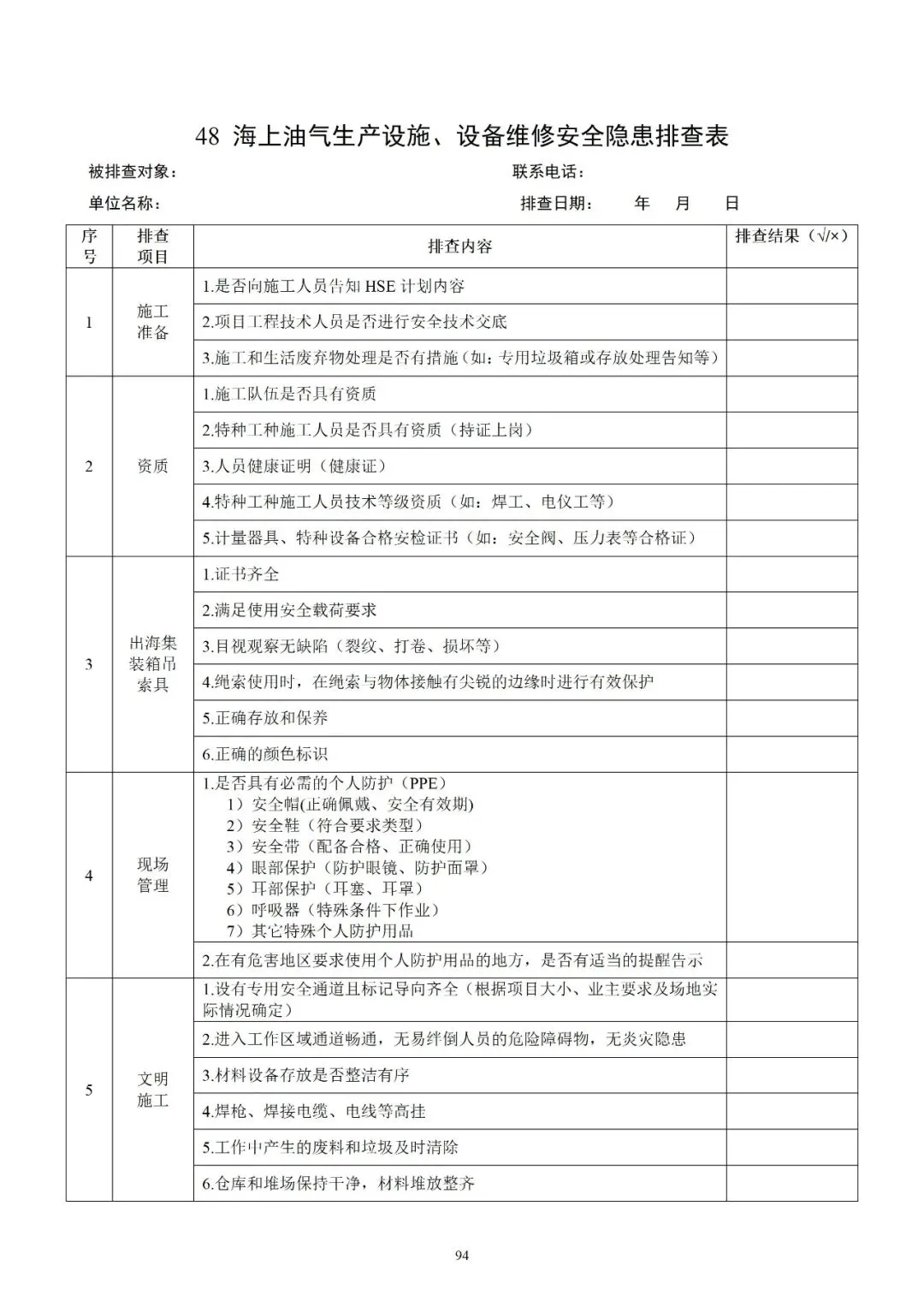 序号 | 排查 项目 | 排查内容 | 排查结果(√/×) |