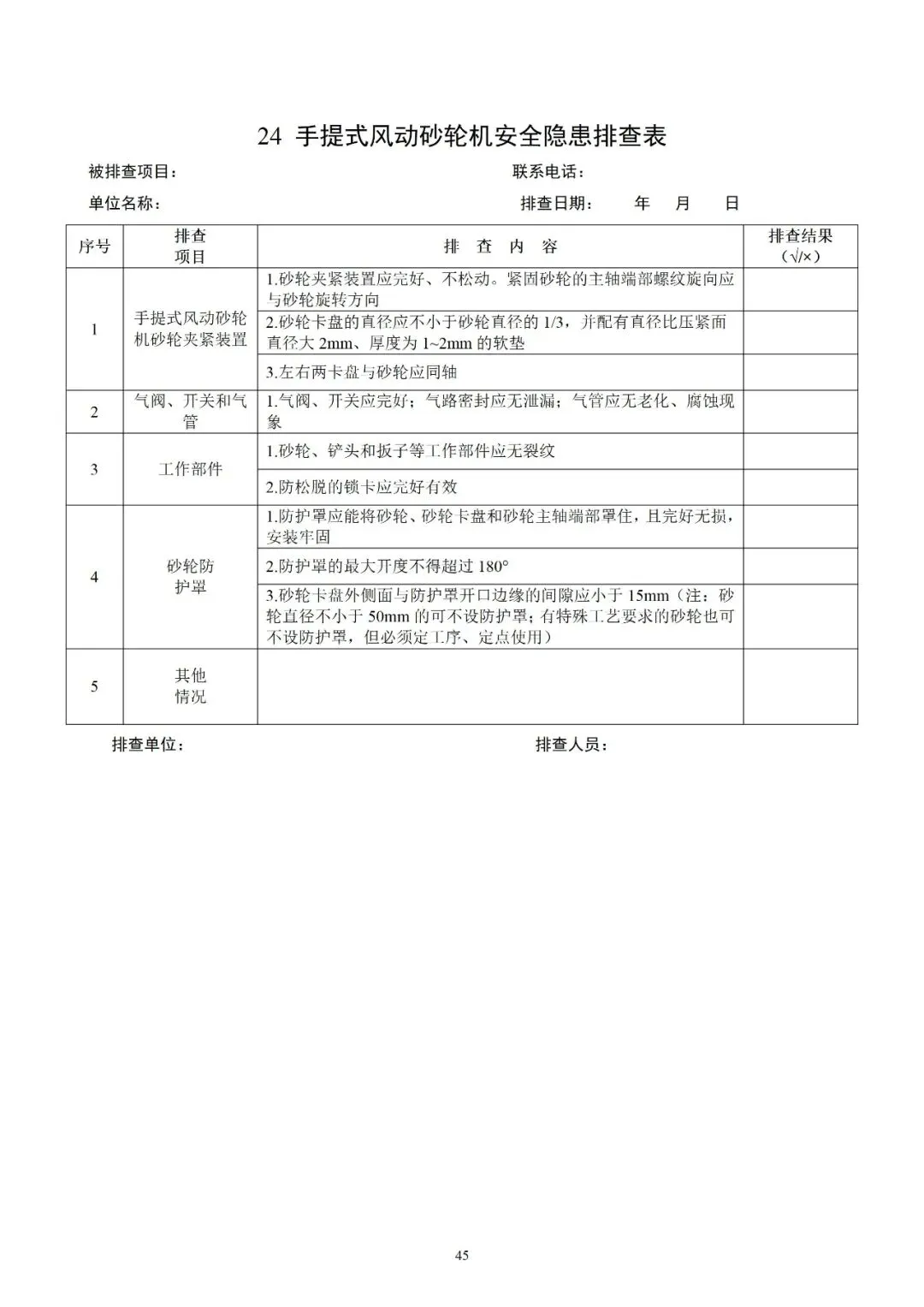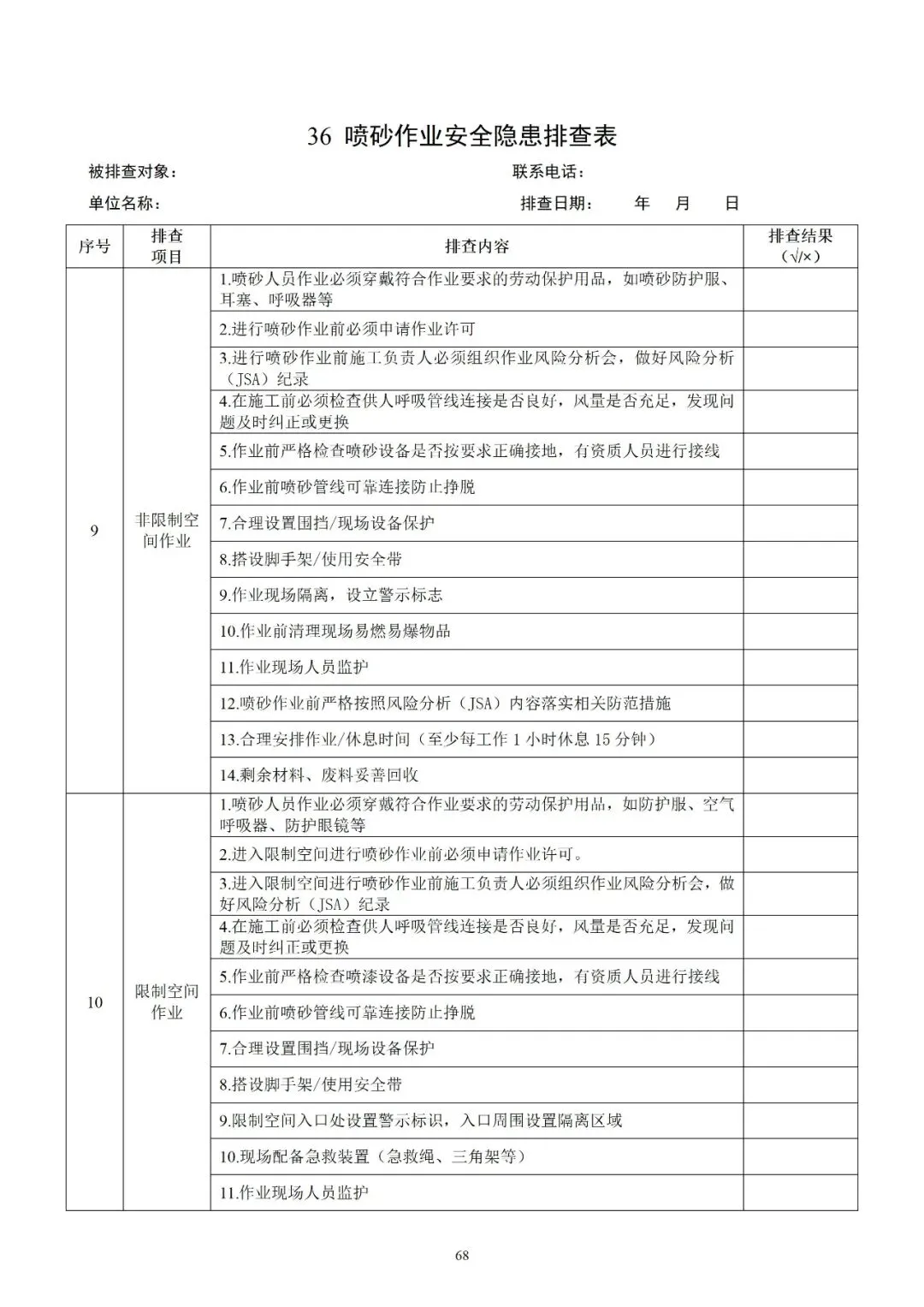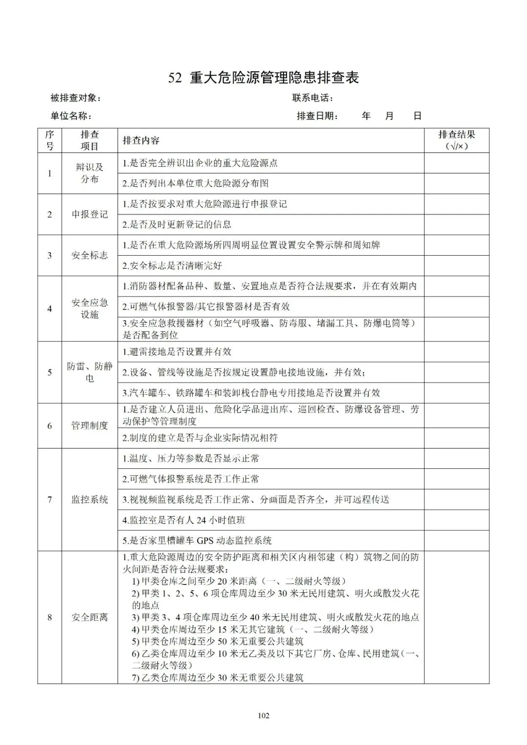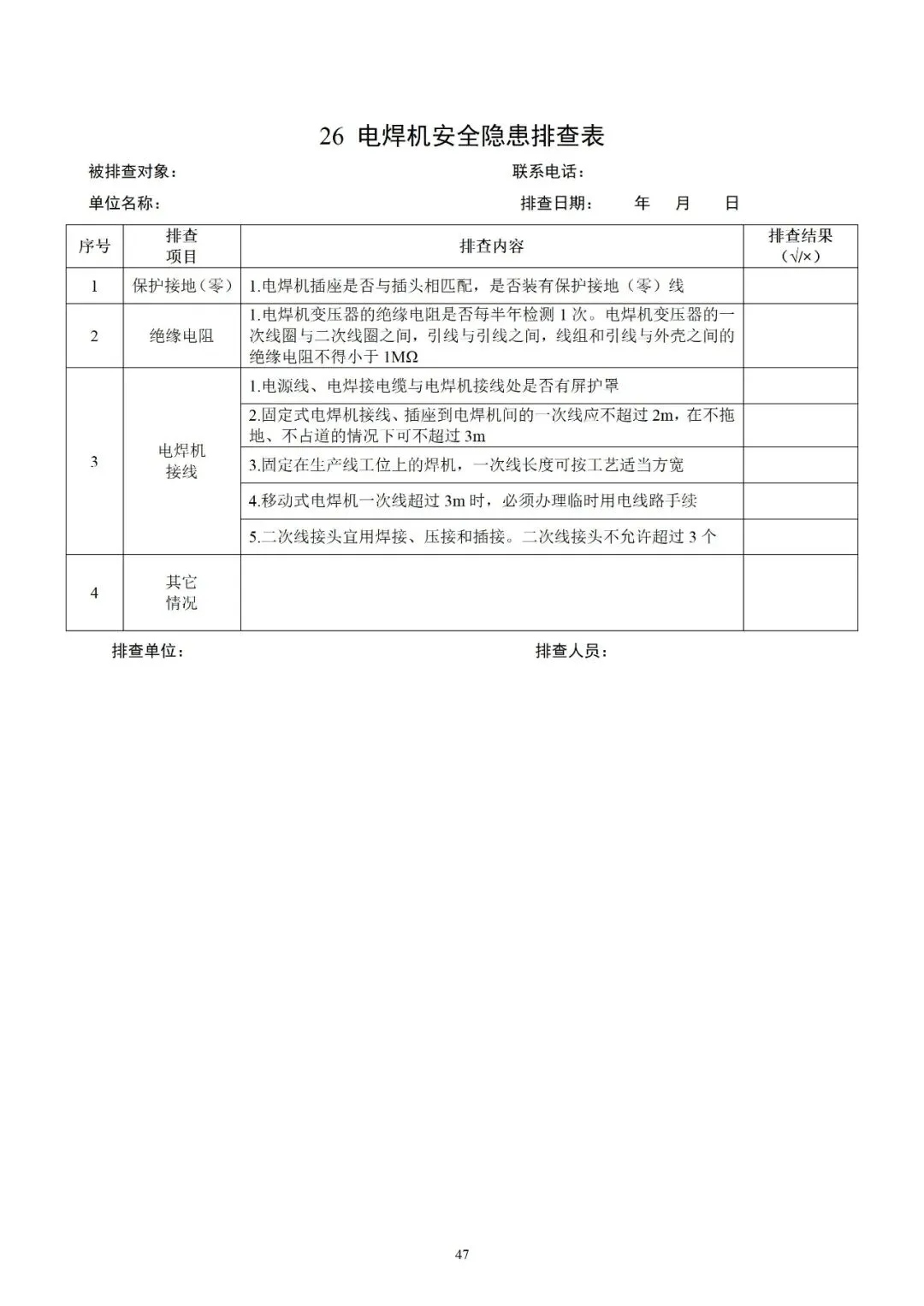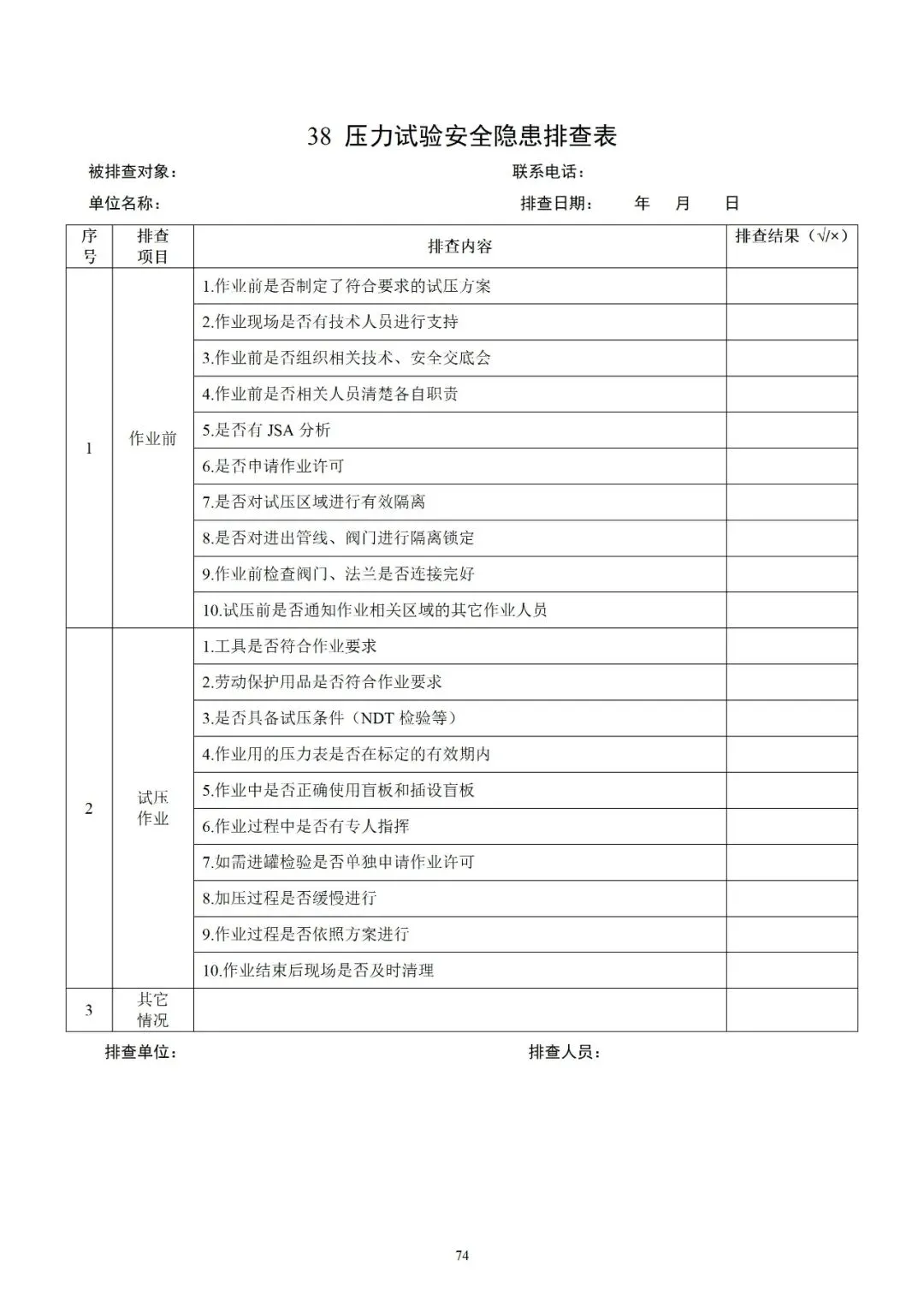 序号 | 排查 项目 | 排查内容 | 排查结果(√/×) |