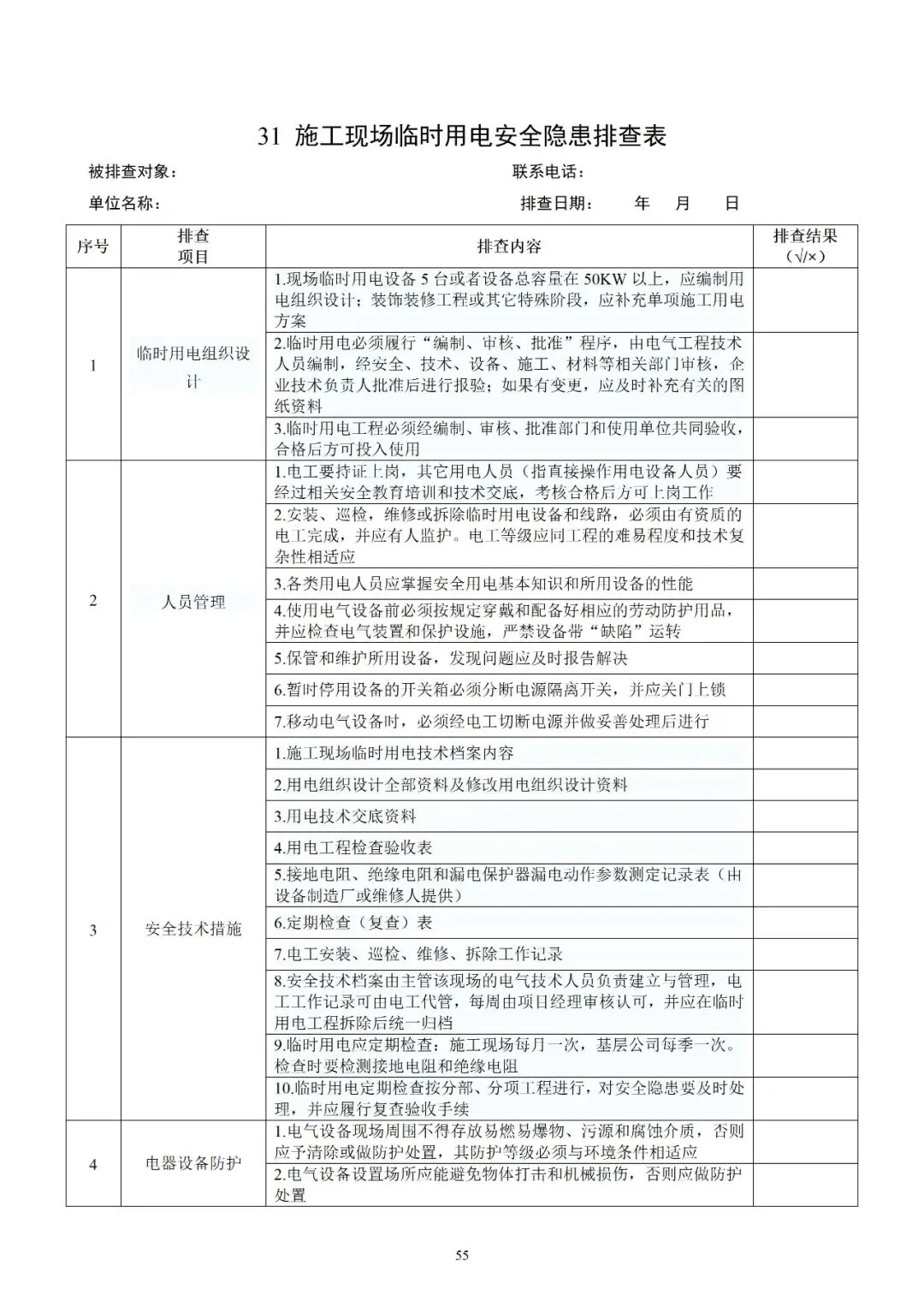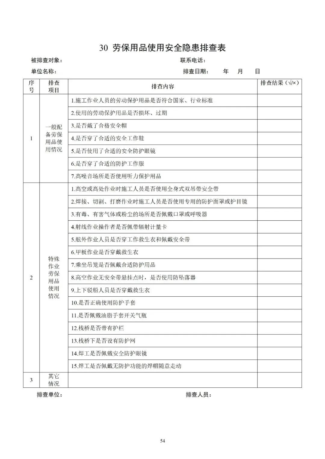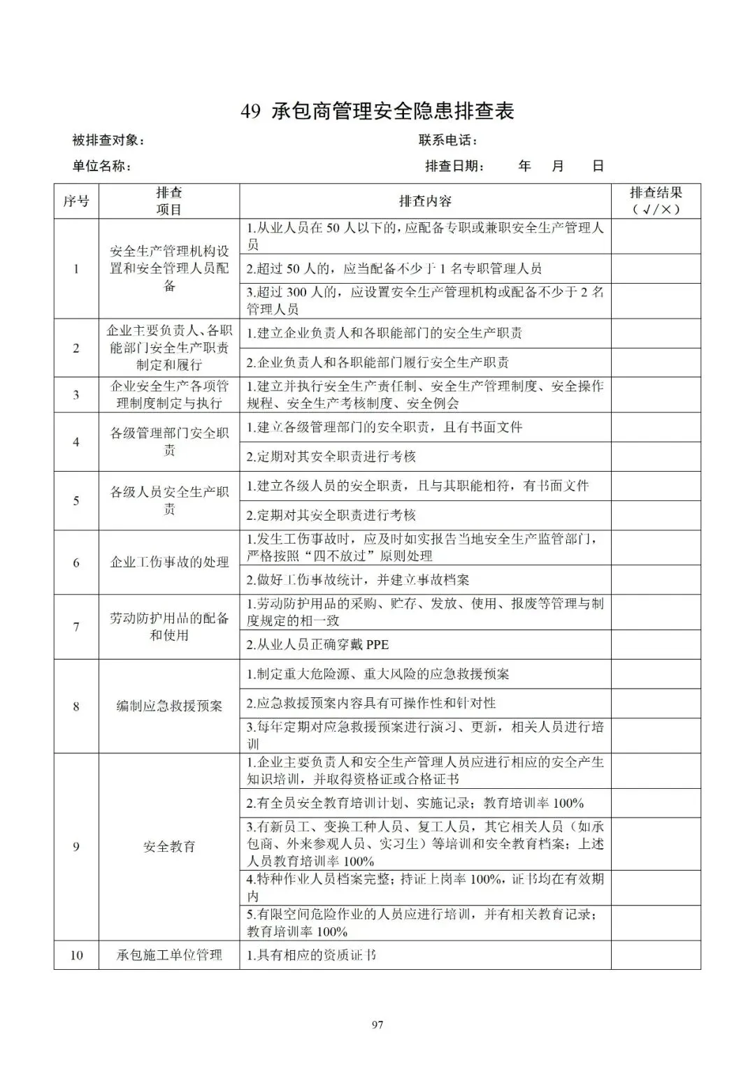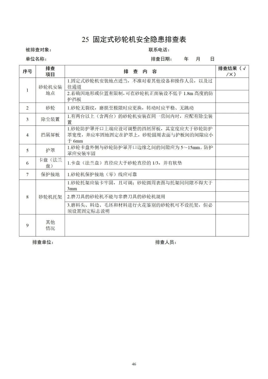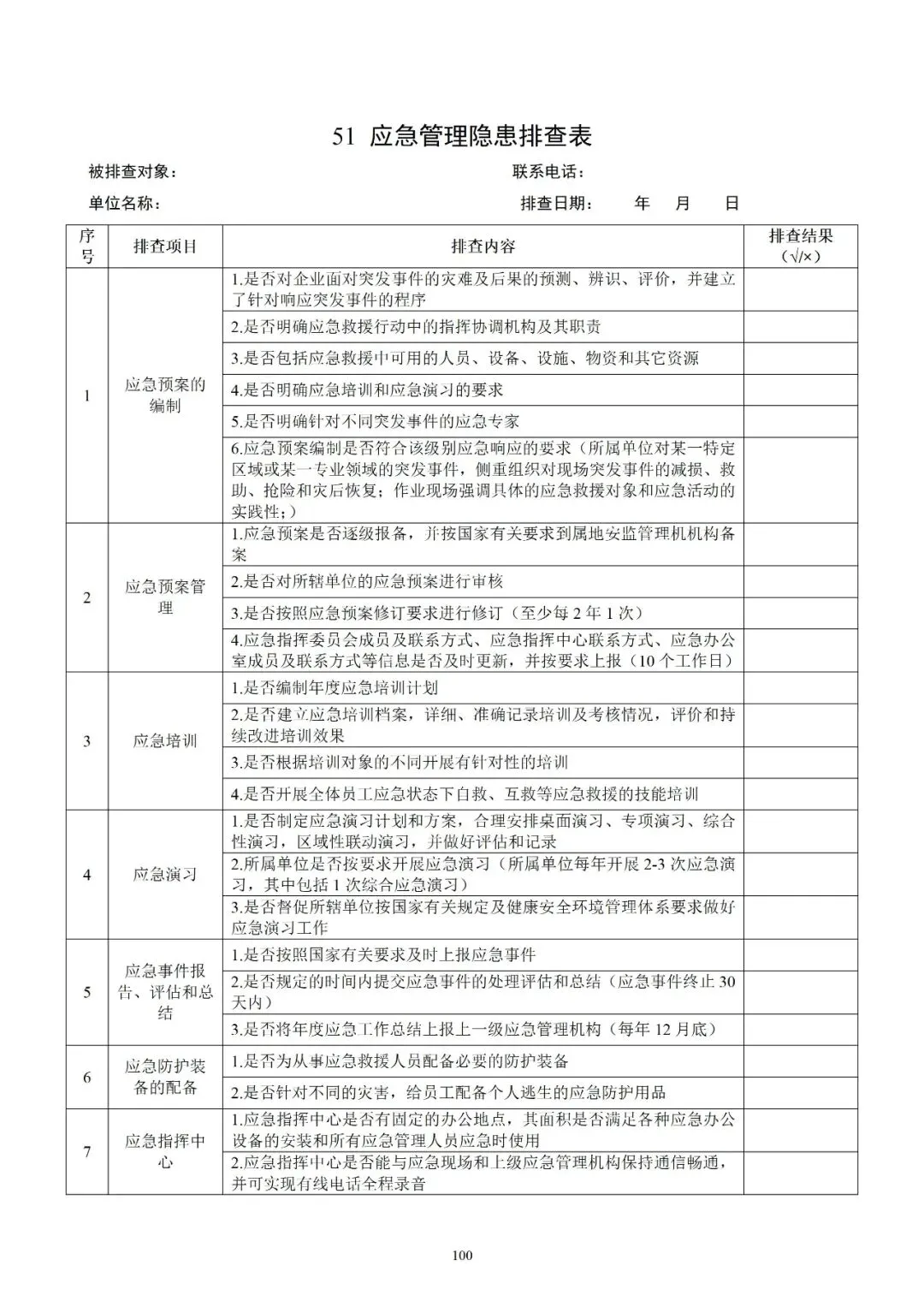 序号 | 排查 项目 | 排查内容 | 排查结果(√/×) |