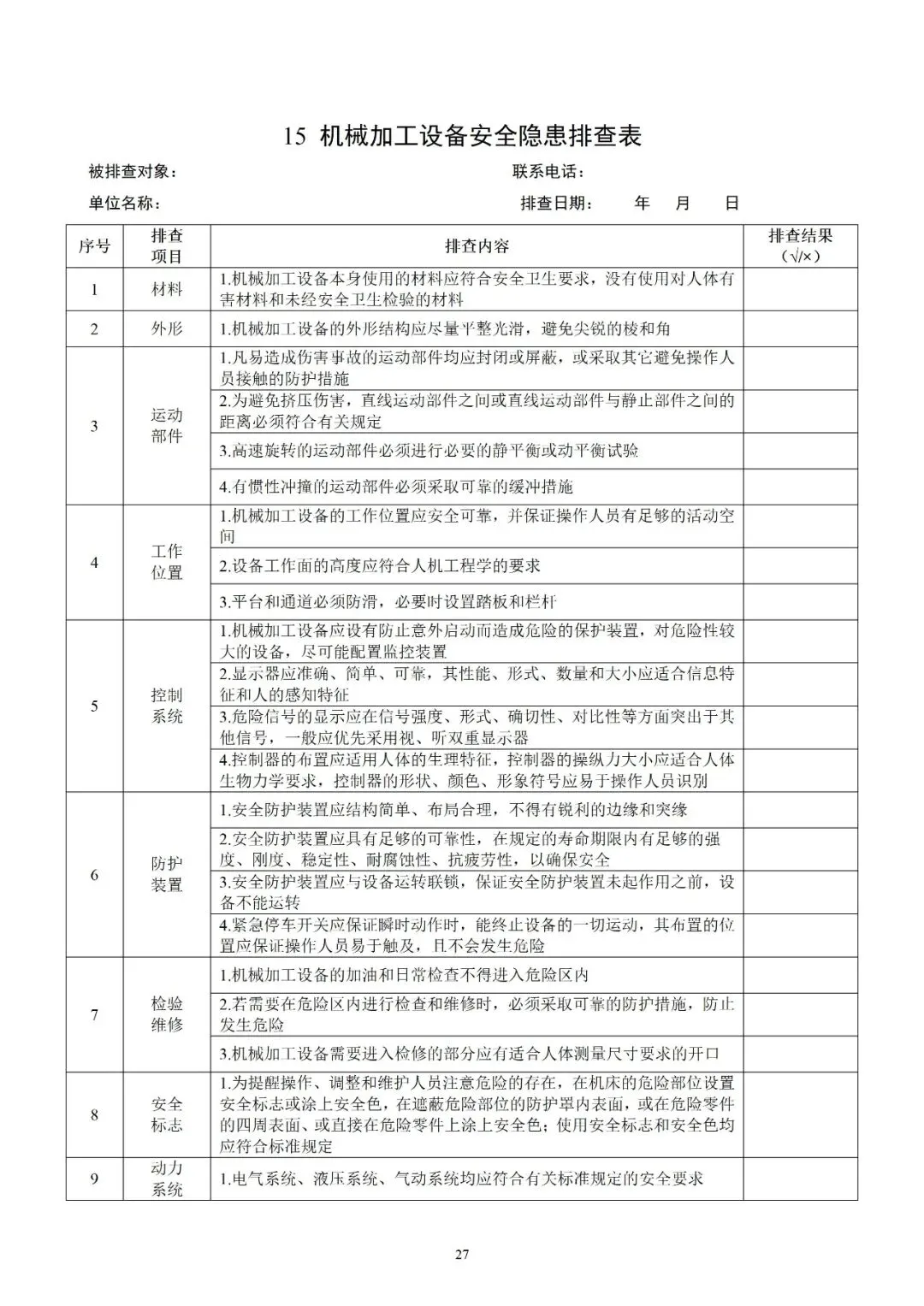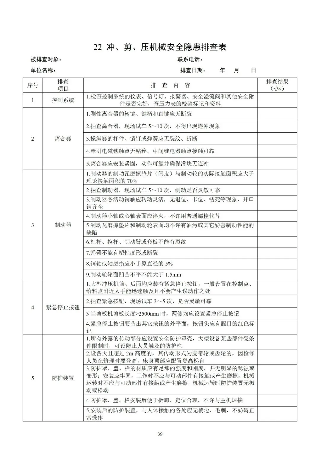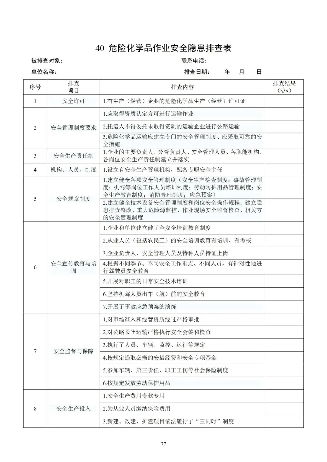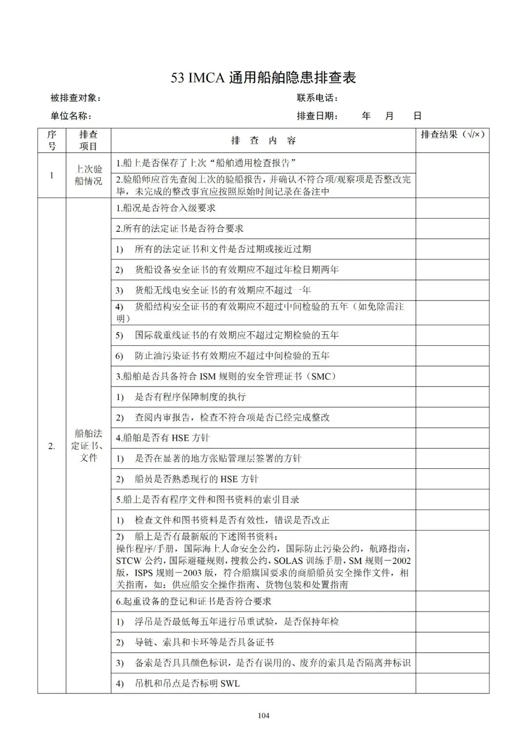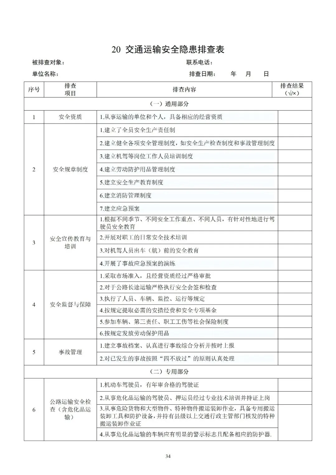 序号 | 排查 项目 | 排查内容 | 排查结果(√/×) |