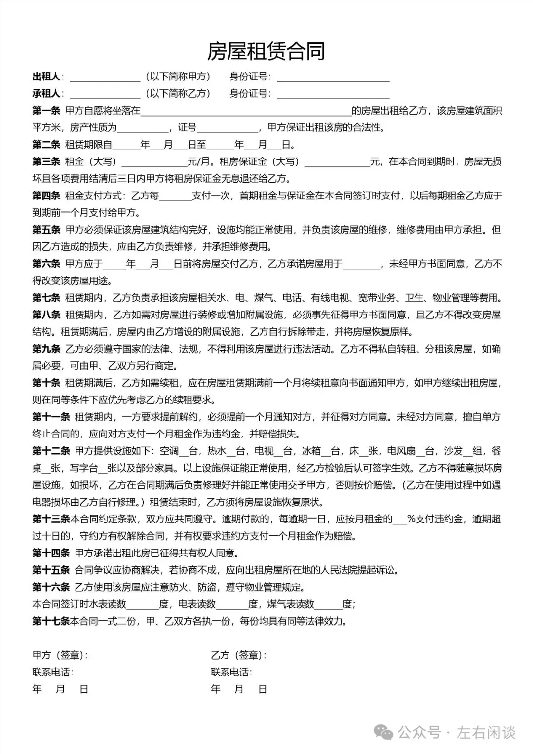 关注后在公众号对话框回复“租房合同”