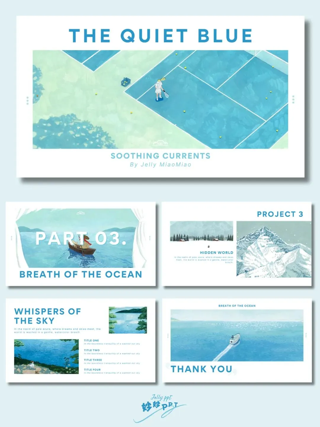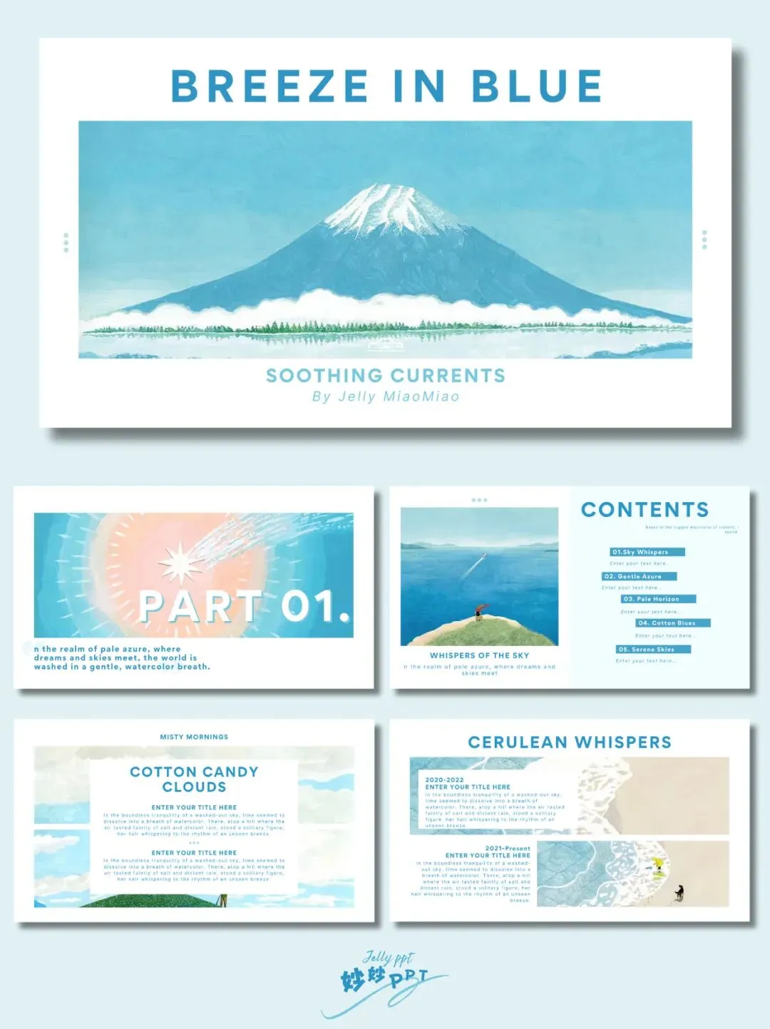 >279|淡蓝色ppt模板|插画风PPT|简约ppt