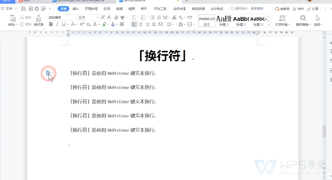 ▪「换行符」是使用Shift+Enter键文本换行,它的标记样式如图所示。