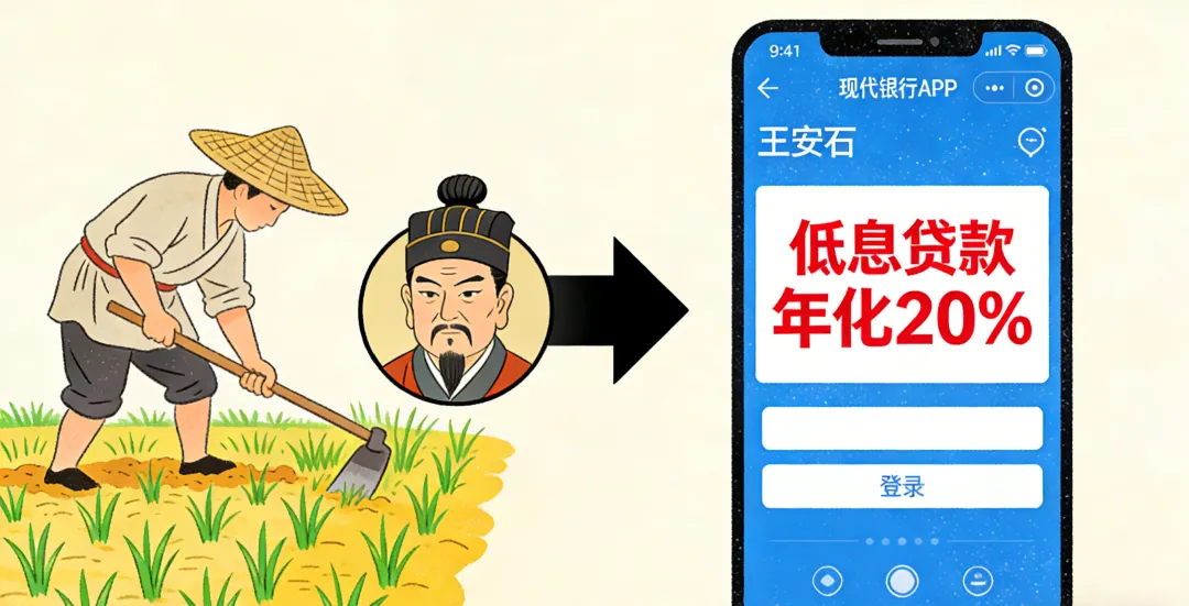 青苗法:国有银行借贷系统,农民春天借1000文买种子,秋天还1200文,利息比当时高利贷的60%低太多,真正的普惠金融。