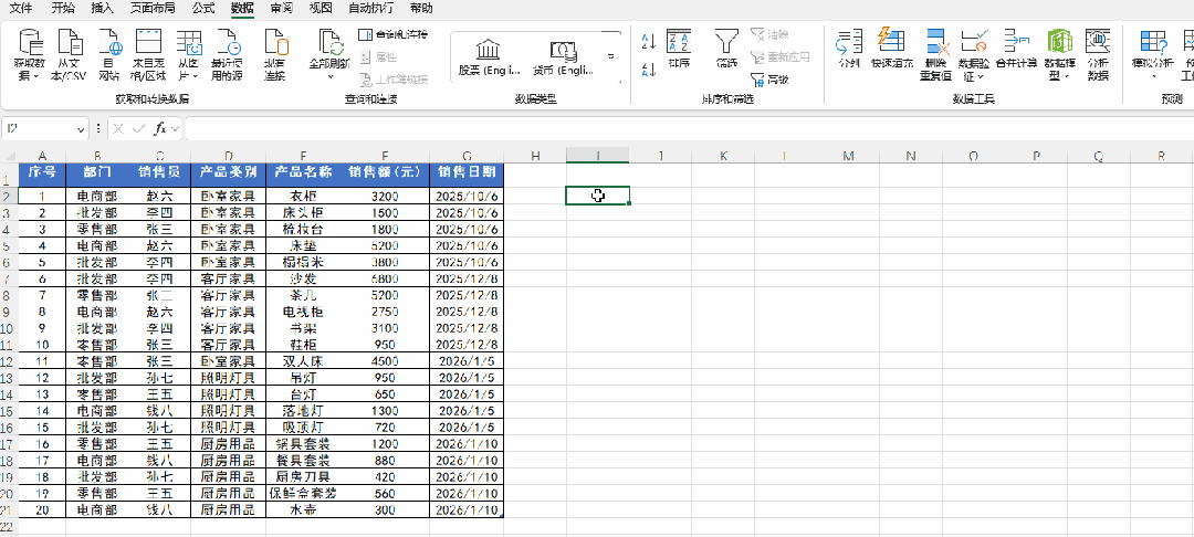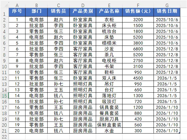 当如下图这样的销售明细表,需要统计汇总各部门的各产品类别的销售额时,往往我们的第一反应是建立数据透视表。