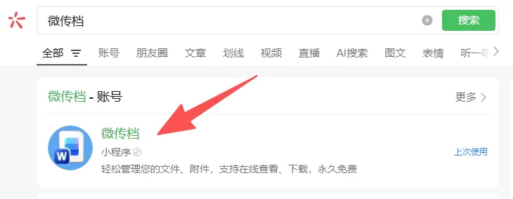 在手机或电脑上,直接在微信搜索栏输入“微件档”或者“微传档”,找到对应的小程序并打开。这2个小程序最大的优点就是不用注册,不必担心收集个人信息,担心隐私问题
