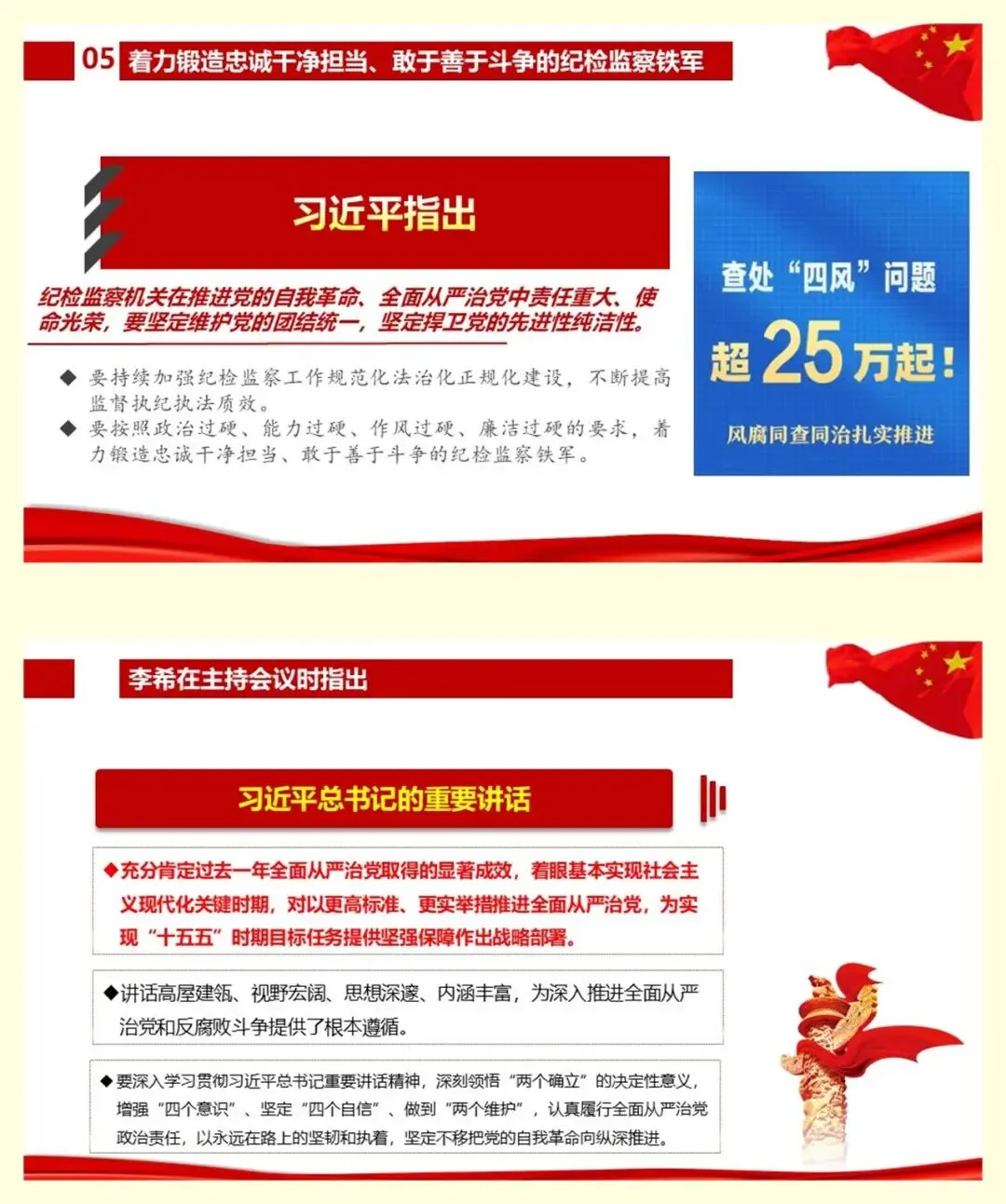 1月12日,习近平在二十届中央纪委五次全会上发表重要讲话强调,以更高标准更实举措推进全面从严治党,为实现“十五五”时期目标任务提供坚强保障。