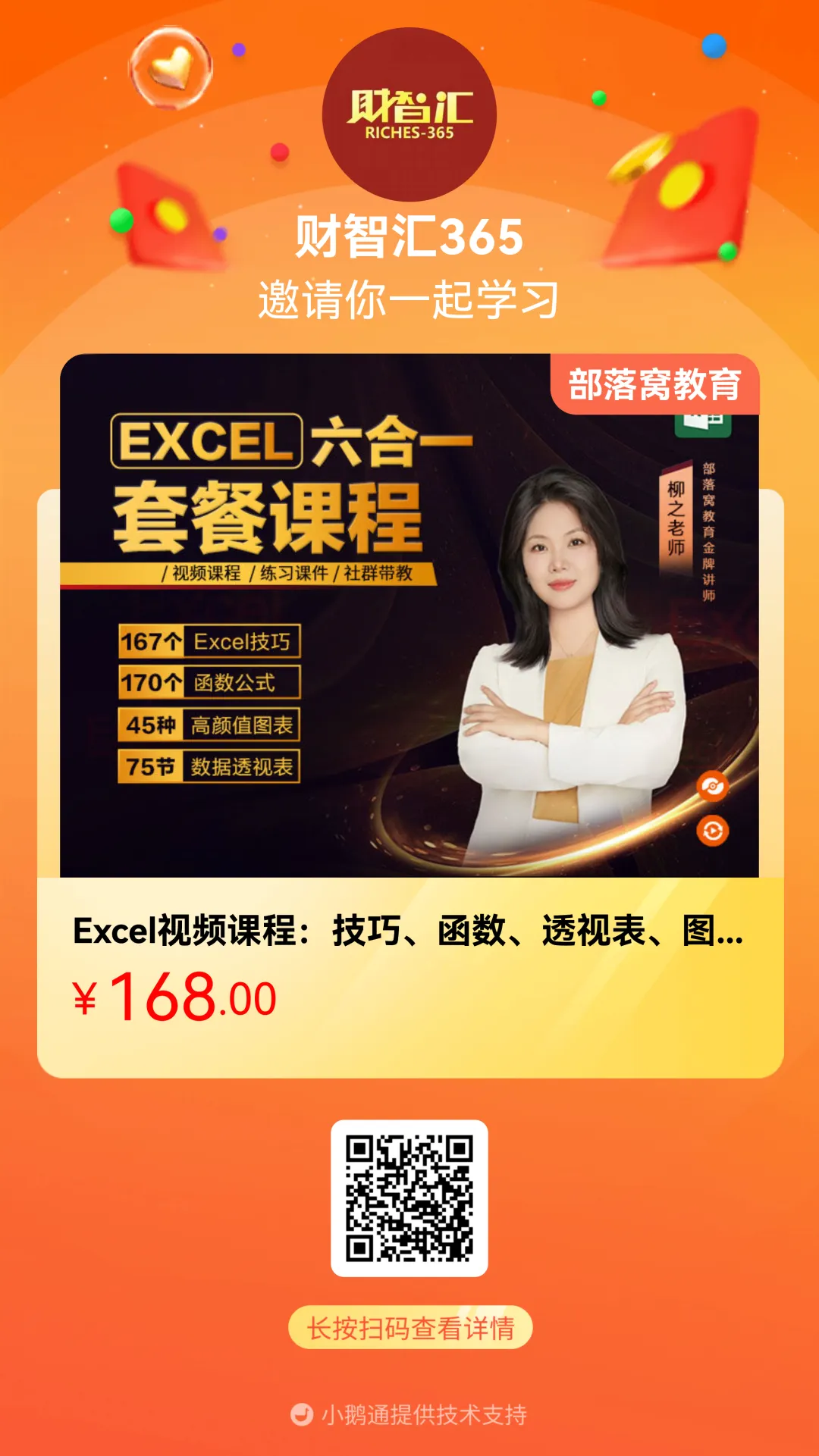 提炼最精华、最核心的知识和技能,1天就能上手实操Excel图表全流程。由10多年财务经验的柳之老师研发出这套小白都能轻松学习的Excel图表系列课程。不懂的可以在群里咨询,有答疑老师还有Excel大牛为你解决问题。下面是几十种商务图表预览,点击播放查看:
