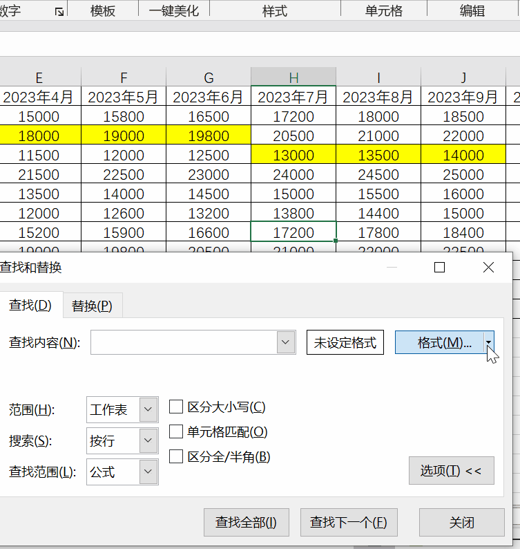 这里我们高亮了产品 A 的第一季度、产品 B 的第二季度、产品 C 的第三季度销售额,要怎么求和呢?别着急,其实我们只要按下【Ctrl+F】,打开查找对话框,点击【选项】,在【格式】中选择【从单元格选择格式】;点击被高亮的单元格,【查找全部】,然后【Ctrl+A】全选。这时我们会发现,在 Excel 的右下角已经有求和的结果啦~怎么样,以上就是今天为大家带来的三个 Excel 小技巧:如果你想系统学习更多的 Excel 实用技巧,减轻工作负担。