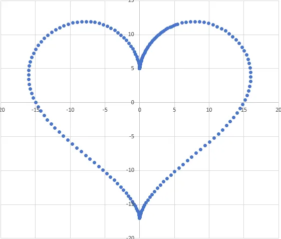 - 连线:Excel负责把这些点连起来,爱心就出现了。