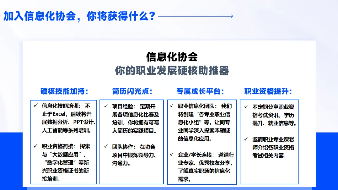 而这,正是信息化协会的核心价值所在:以“职业信息化”为导向,联动企业资源、汇聚多领域专业力量,不仅为同学们搭建成长平台,更精准对接爱馨递科技“爱心到家”项目需求,着力培养兼具信息化技能与爱心服务意识的复合型职业团队,筑牢人才储备根基。