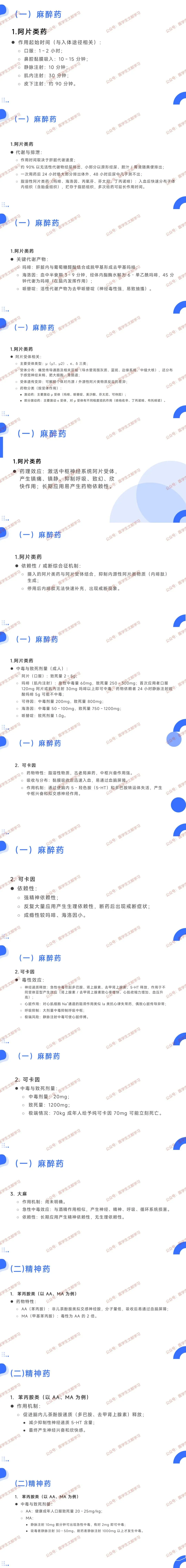 - 代谢排泄:90% 以无活性代谢物经尿排出,脂溶性品种(吗啡、海洛因等)易分布于组织及胎盘,多次给药延长作用时间。