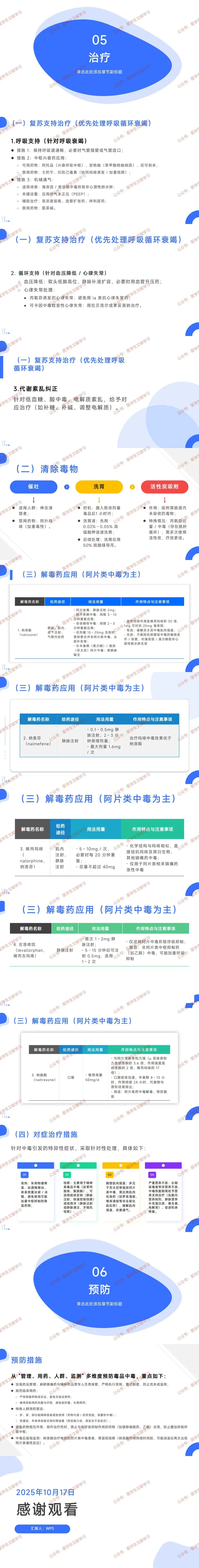 - 鉴别诊断:阿片类中毒谵妄需鉴别合并用药或脑疾病;瞳孔缩小需排除其他药物中毒、脑桥出血;海洛因中毒不典型需考虑掺杂物影响;阿片戒断综合征无认知改变,有认知改变需找其他病因。